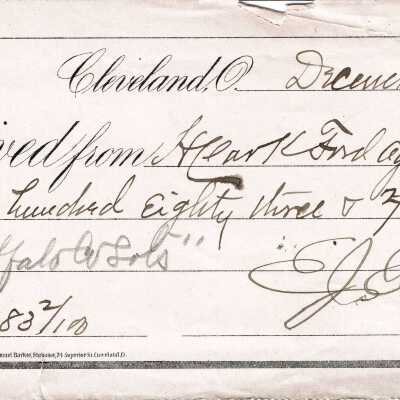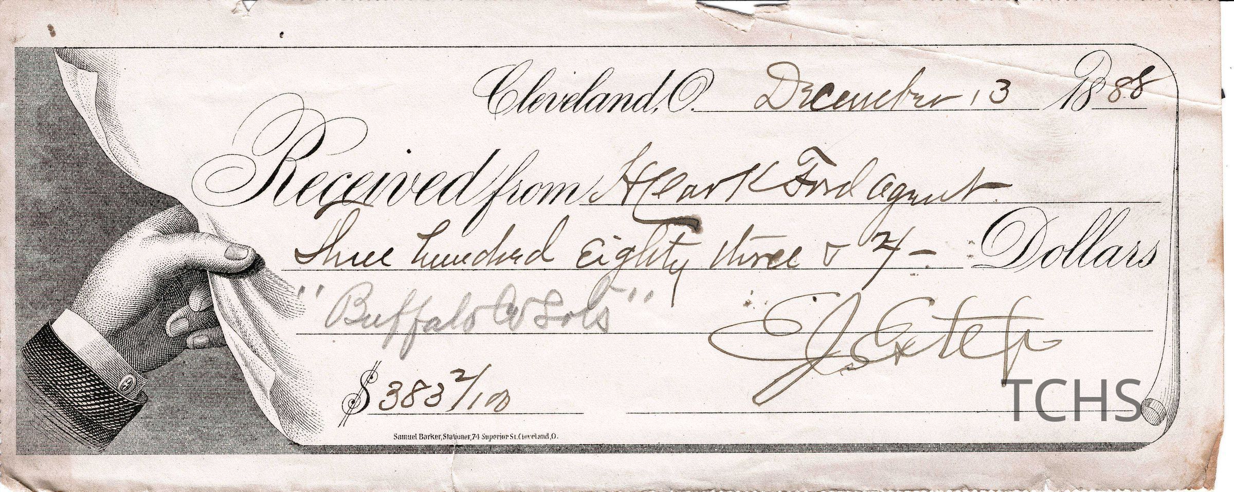 Check, Payment for Buffalo Lots in Cleveland, Baldwin Lands? Dated December 13, 1888. Received by H. Clark Ford, Baldwin Agent.Acquisition