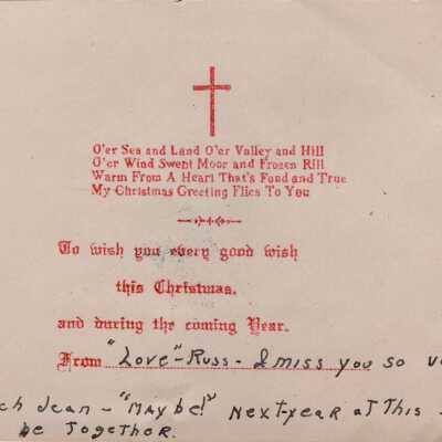 Christmas card from Russell Law to Jean Law