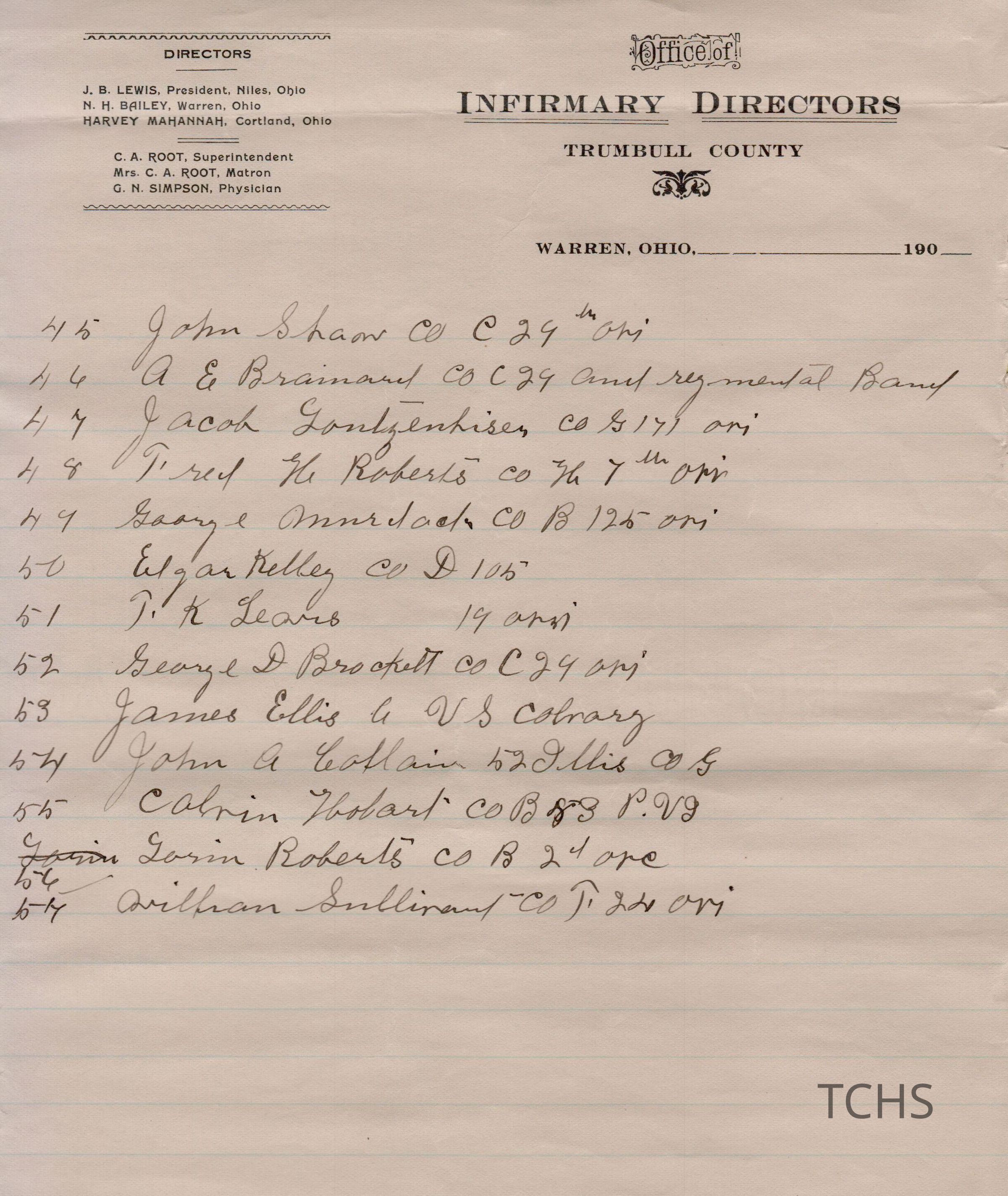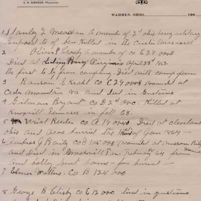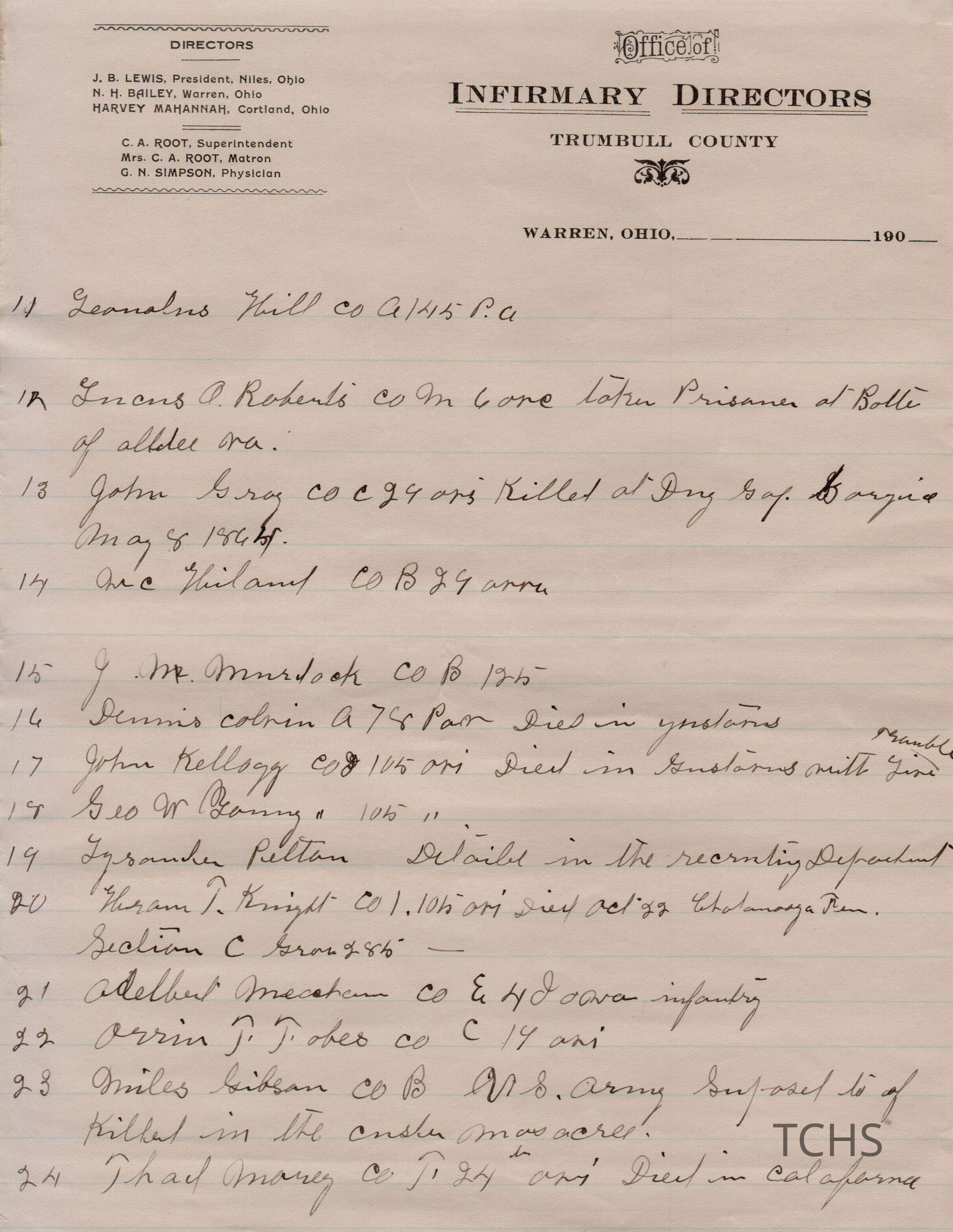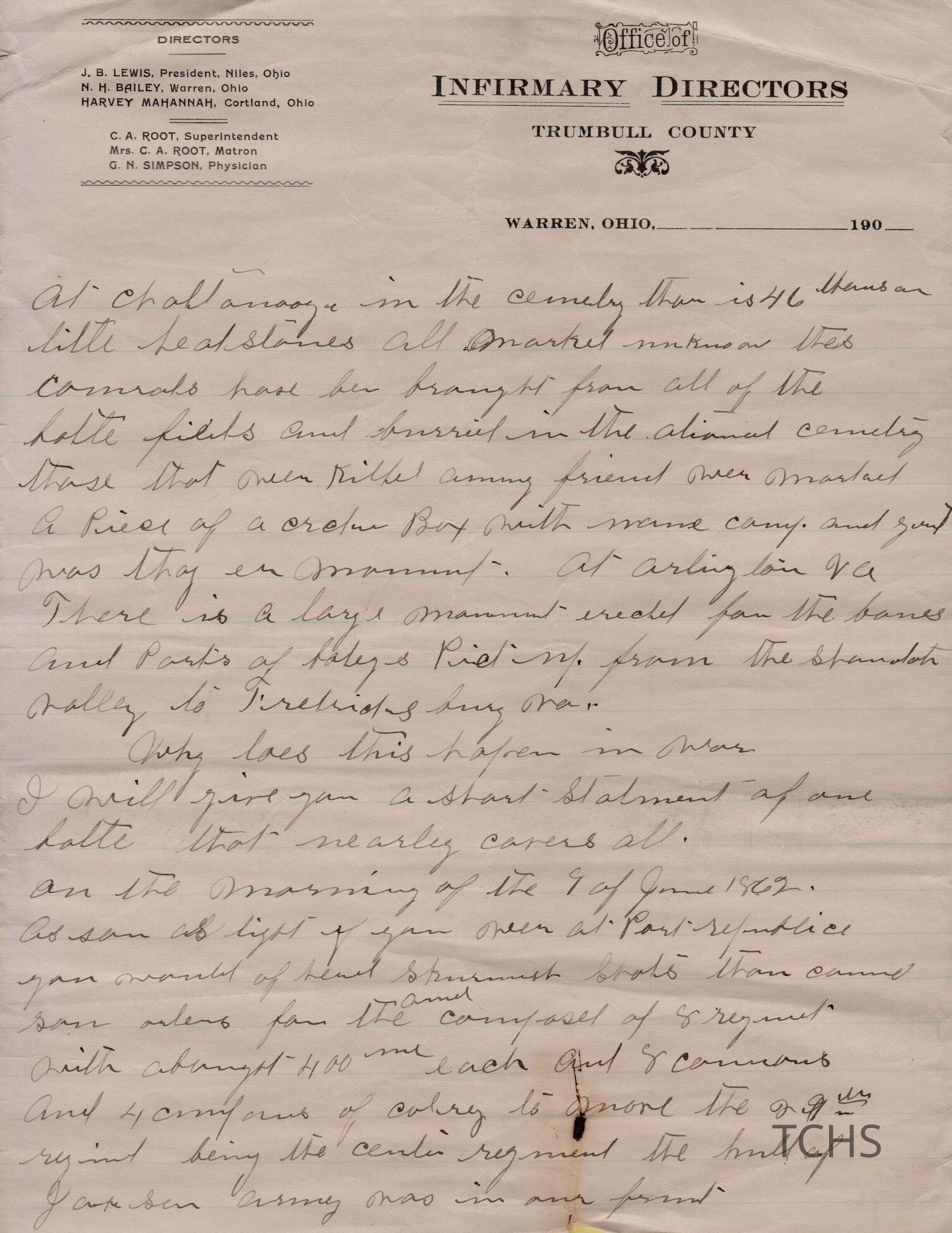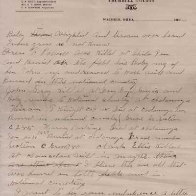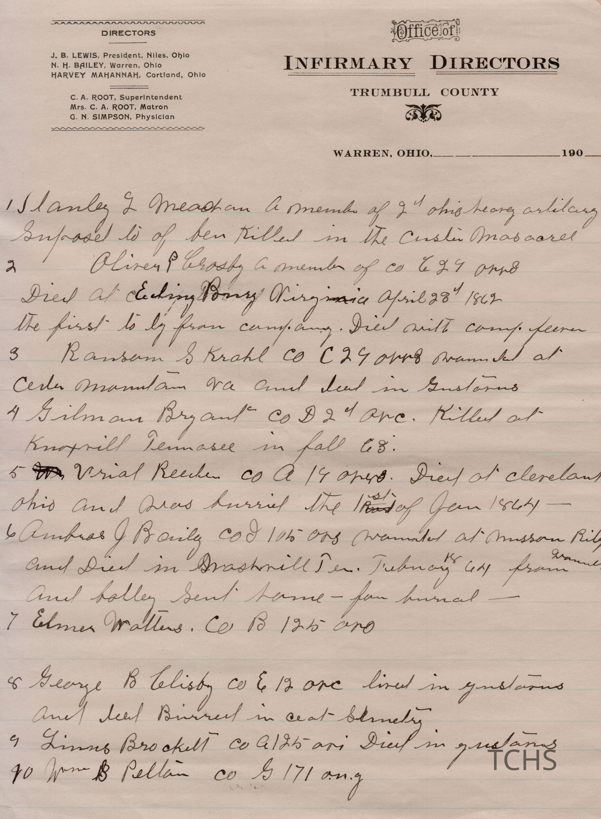 Civil War histories on the Office of Infirmary Directors letterhead