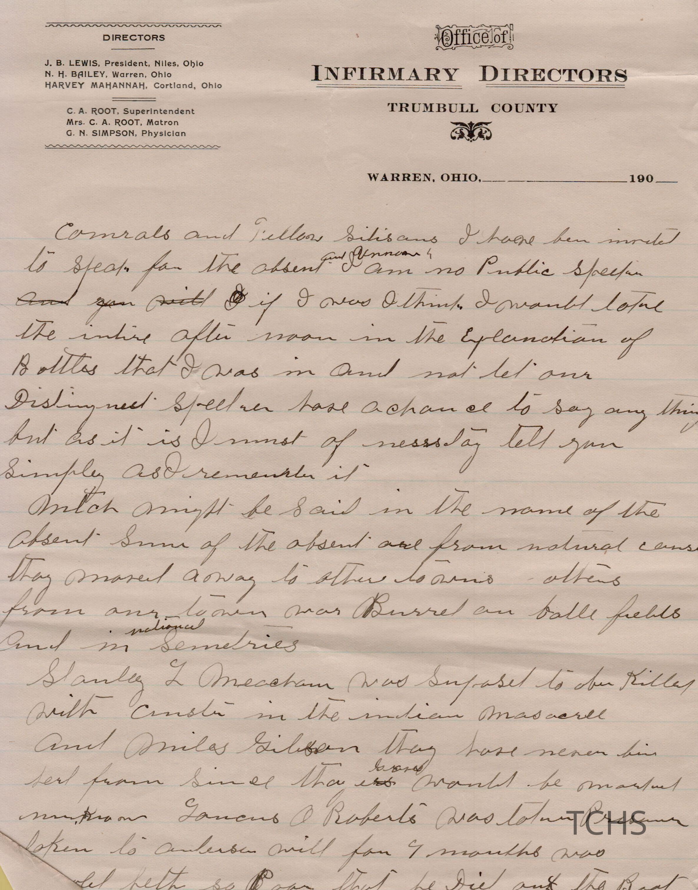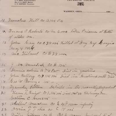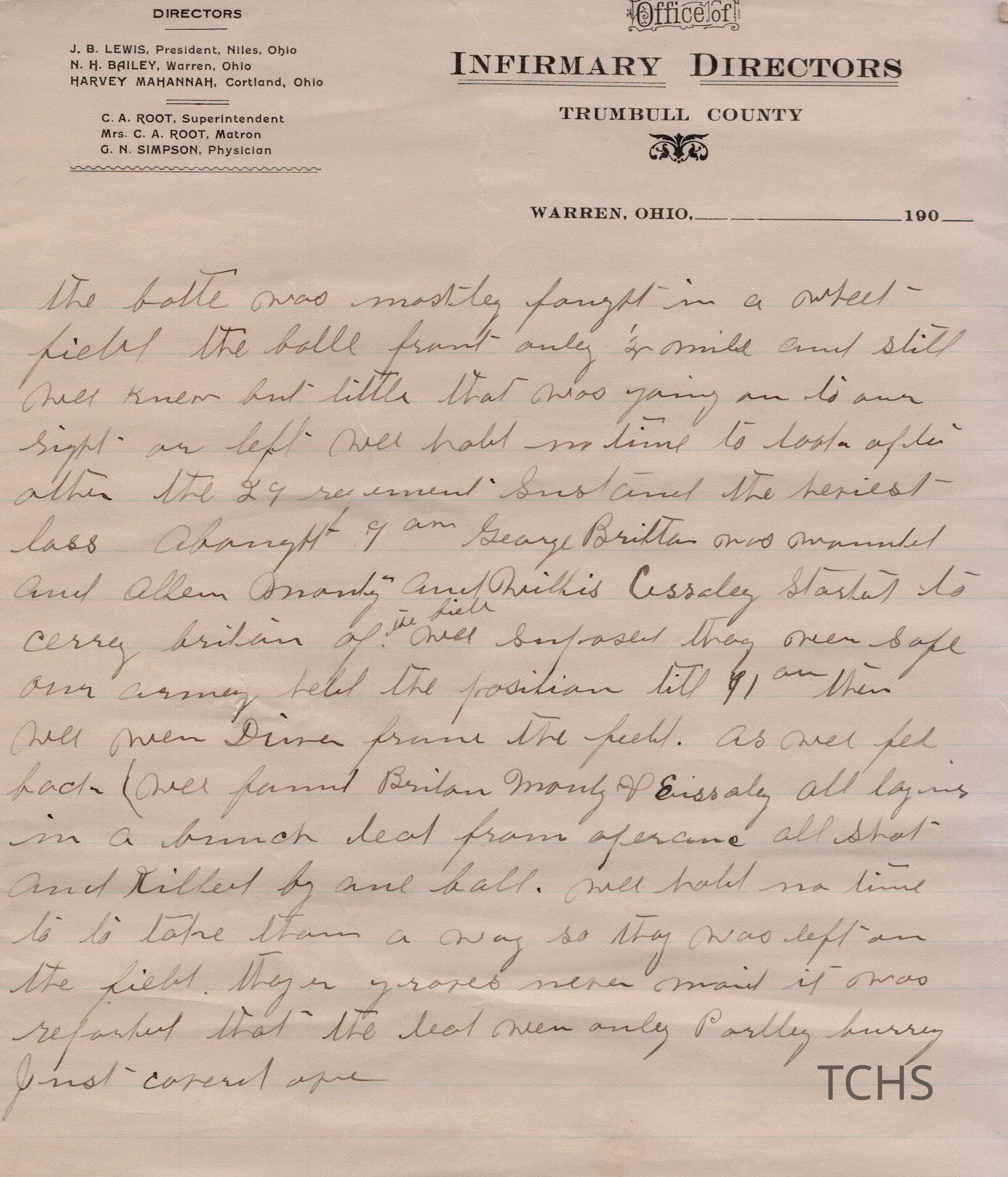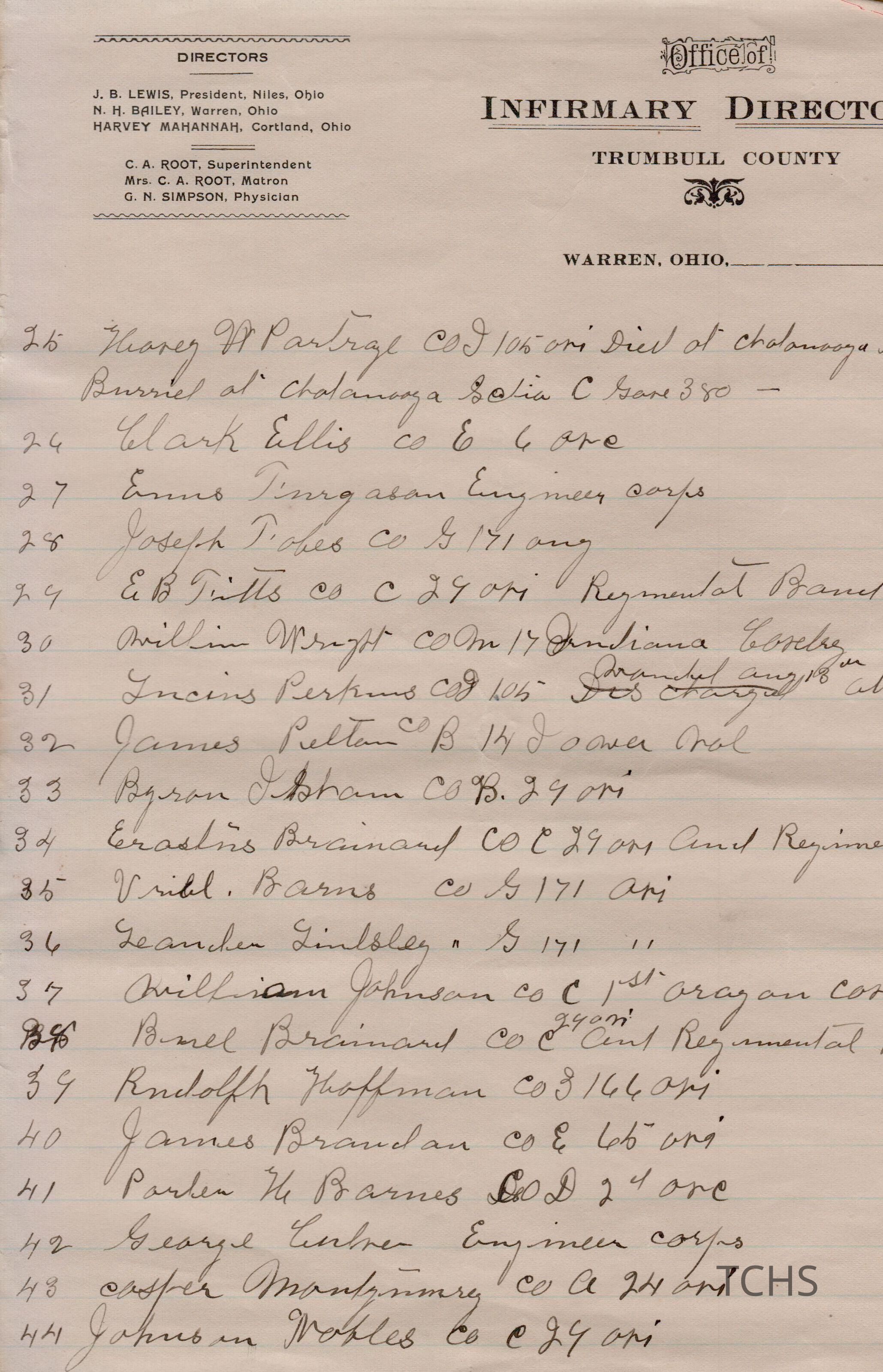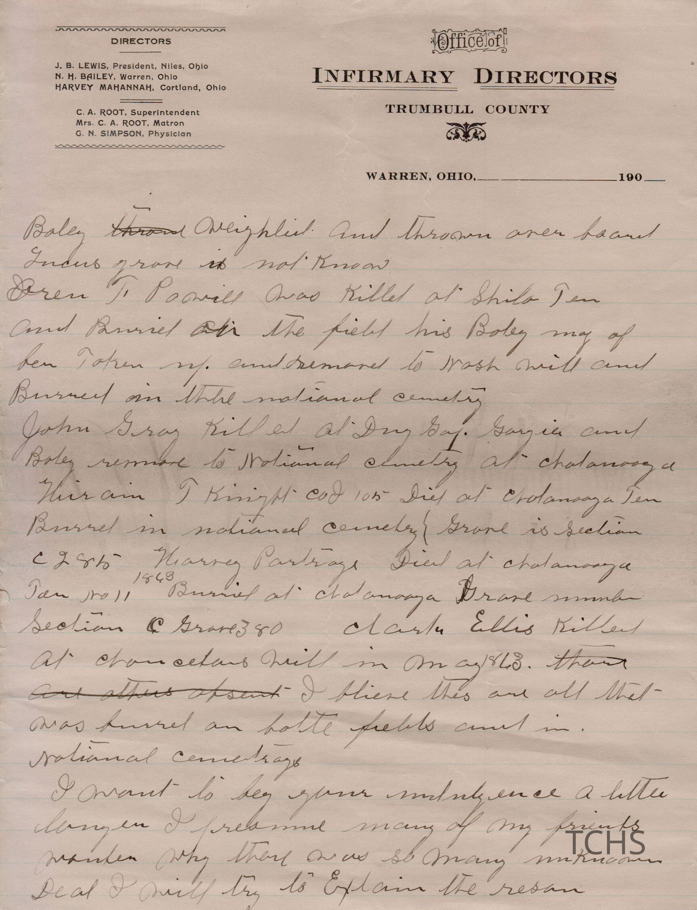 Civil War histories on the Office of Infirmary Directors letterhead