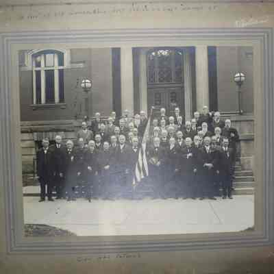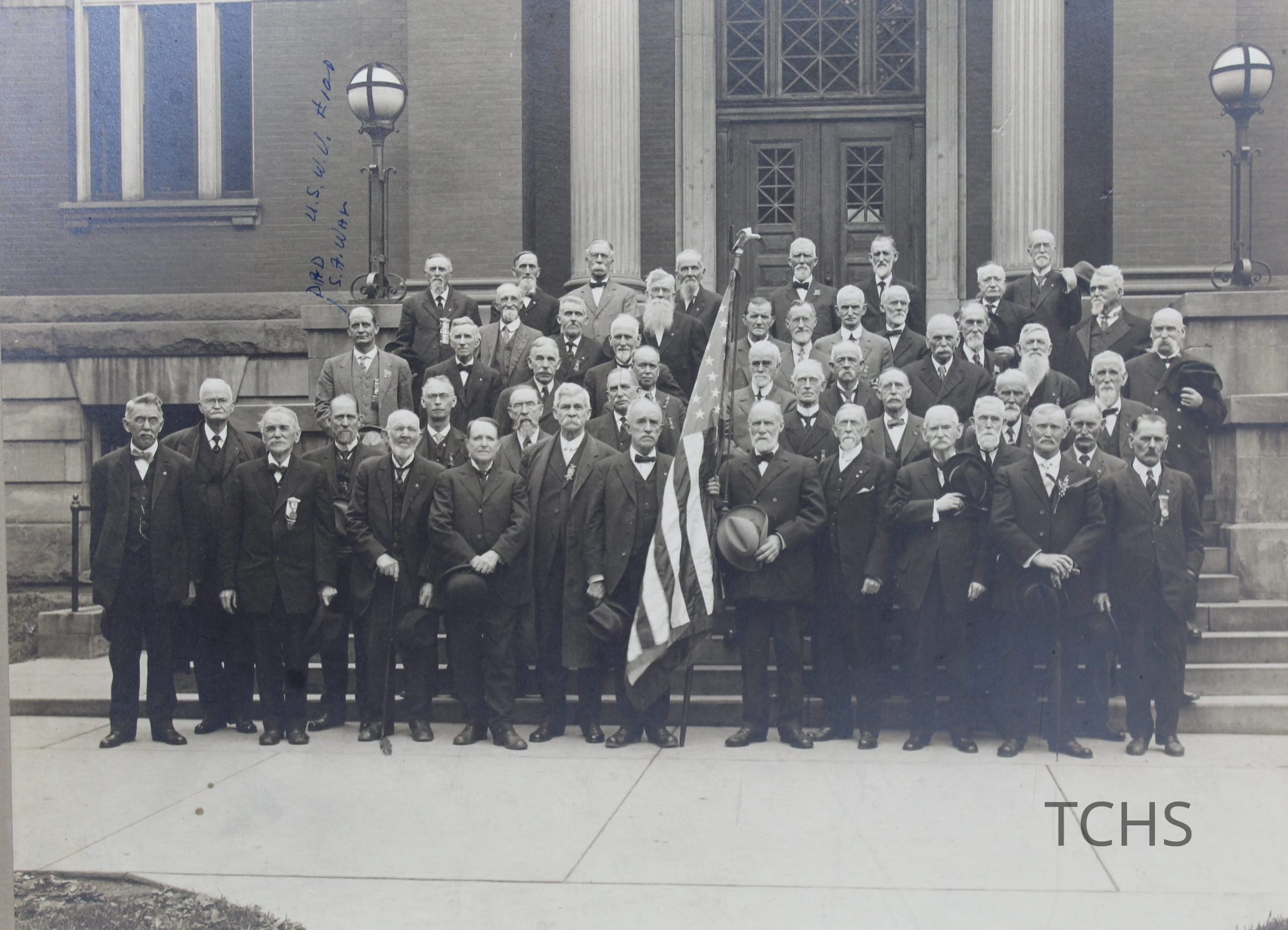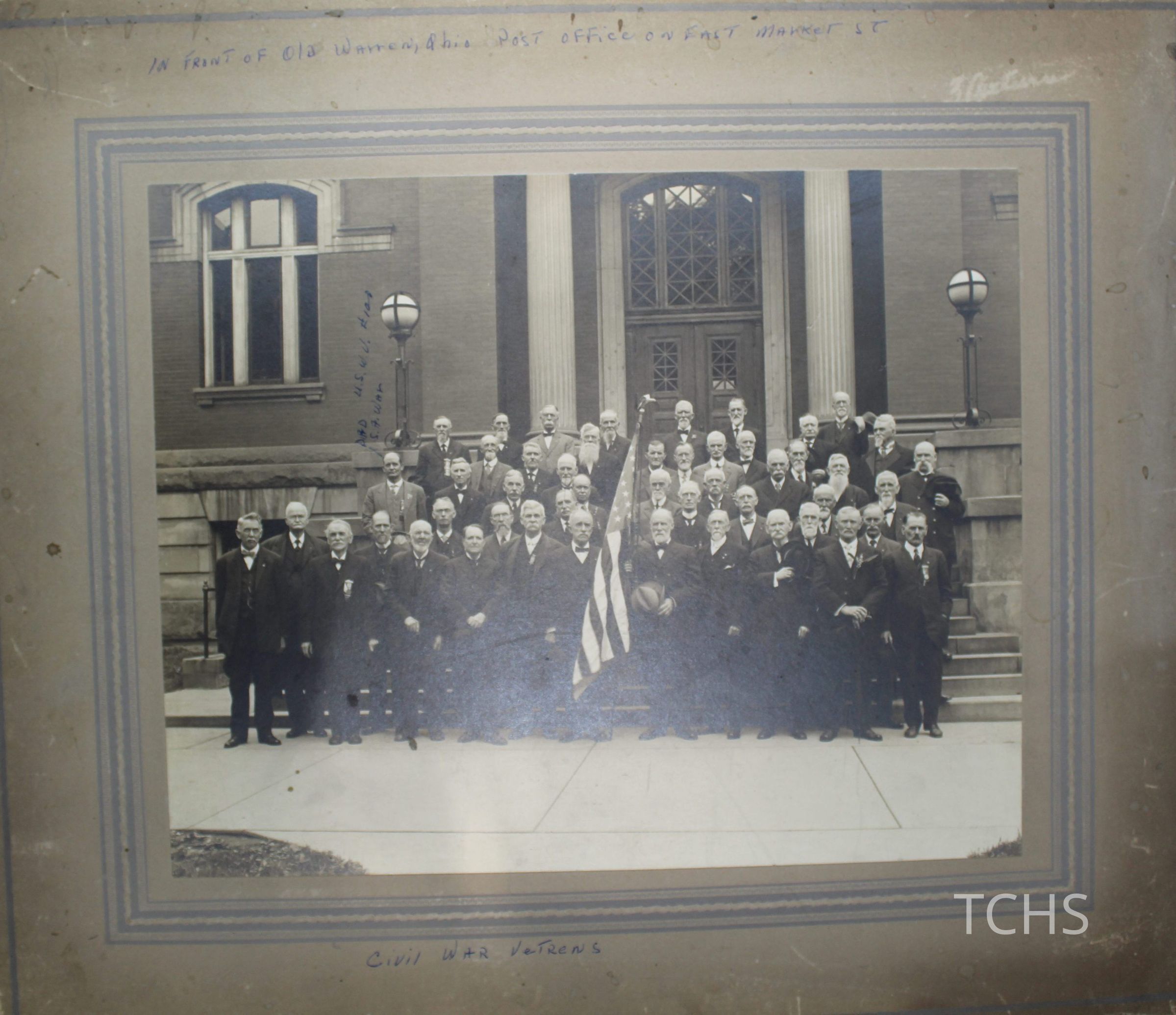 A photograph of Civil War veterans in front of the Old Post Office in Warren, on East Market St.Photograph Details