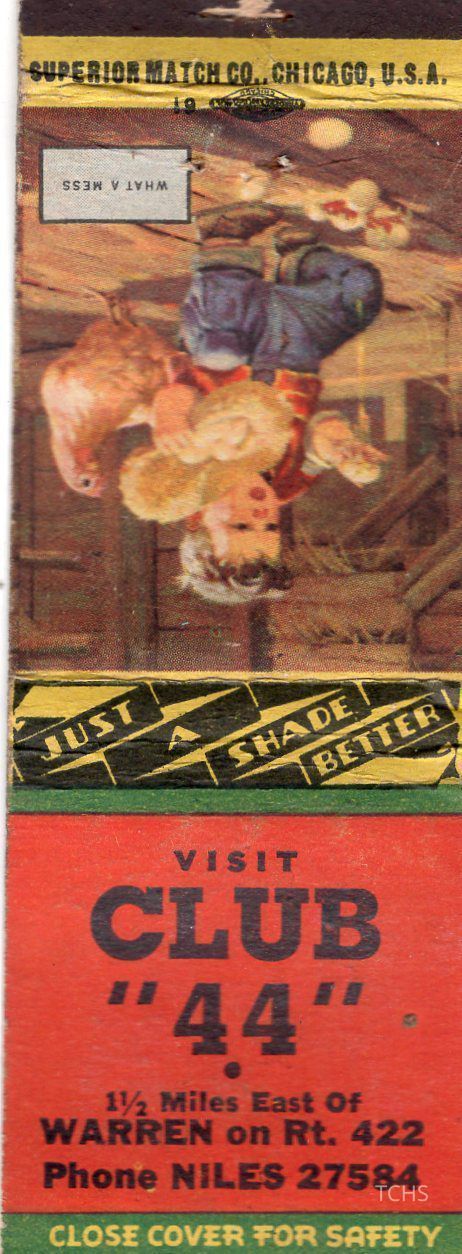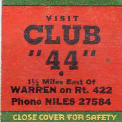 An undated matchbook from Clu 44 located on Rt. 422 in Niles, OH.Acquisition