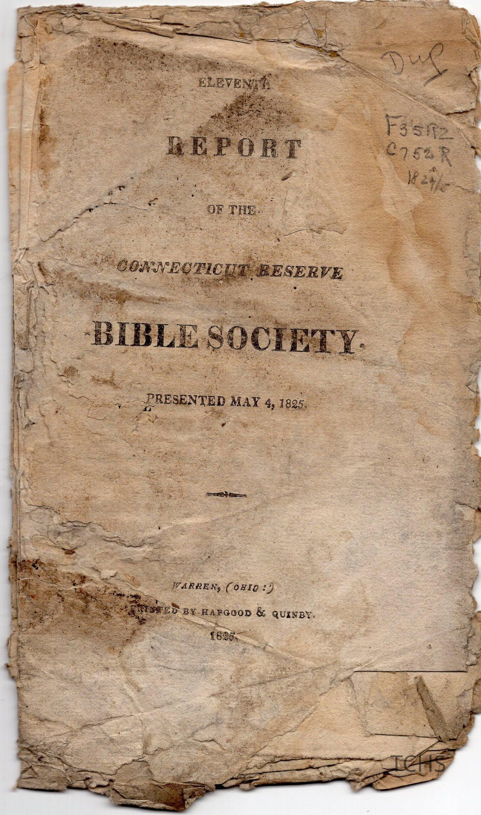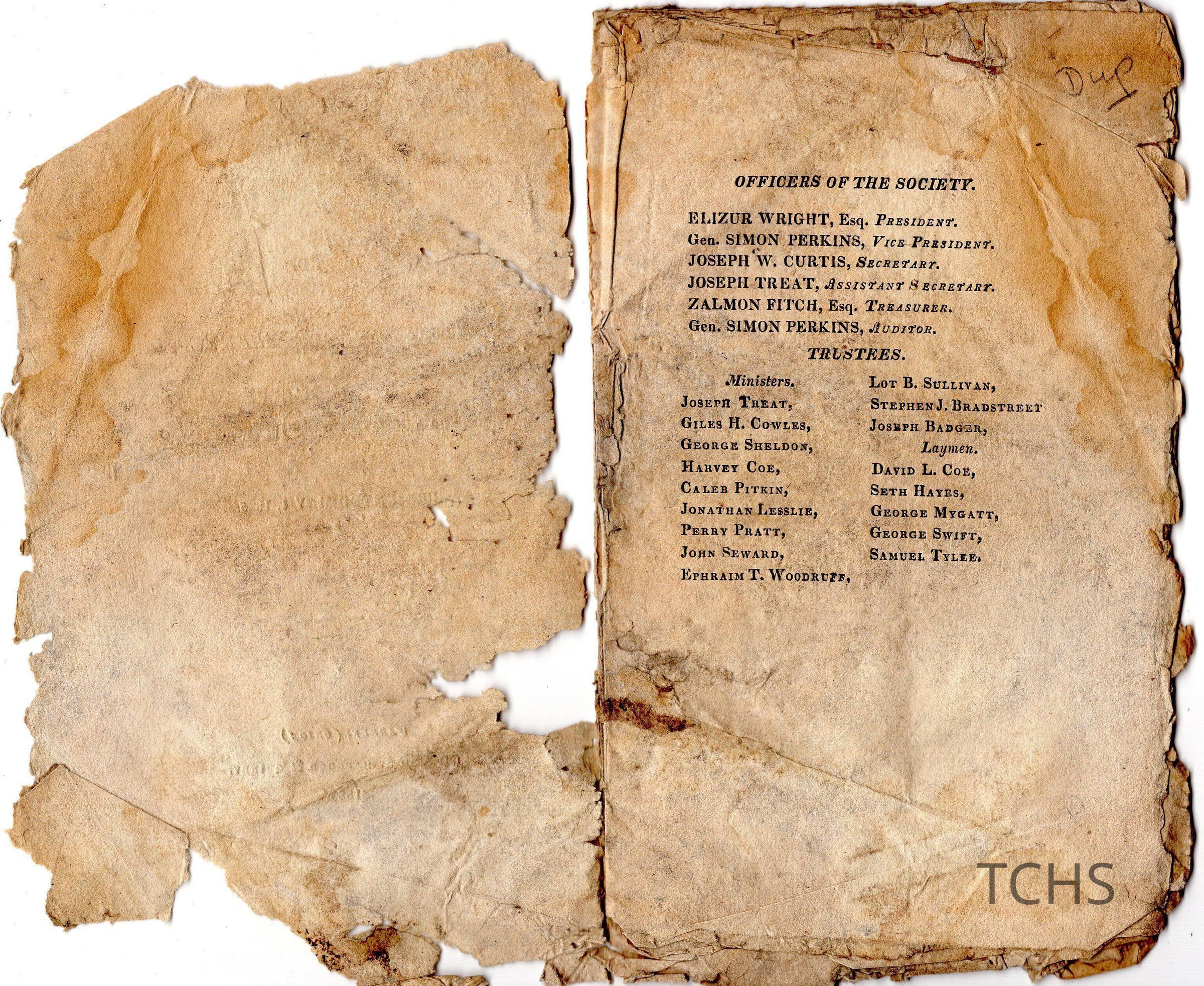 Pitkin, Caleb, Seward, John, Pratt, Perry, Coe, David L., Treat, Joseph, Connecticut Reserve Bible Society, Hapgood & Quinby, Curtis, Joseph W., Mygatt, George, Hayes, Seth, Bradstreet, Stephen J., Tylee, Samuel, Woodruff, Ephraim T., Sullivan, Lot B., Badger, Joseph, Fitch, Zalmon, Lesslie, Jonathan, Perkins, Simon, Cowles, Giles H., Wright, Elizur, Swift, George, Coe, Harvey, Sheldon, George