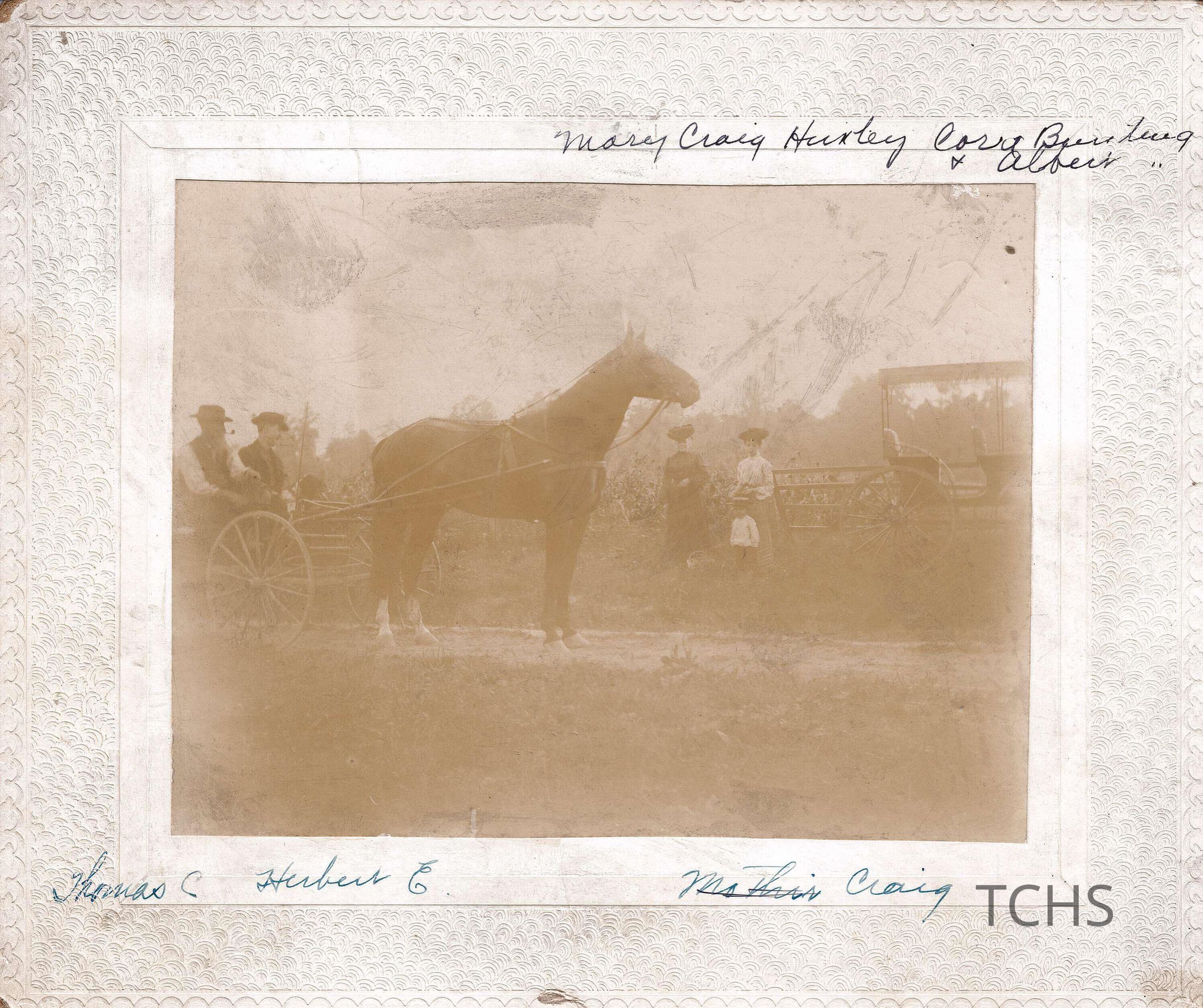 Thomas Craig, Herbert Craig, Mary Craig Hurley, Cora (?) (?), and AlbertLocation