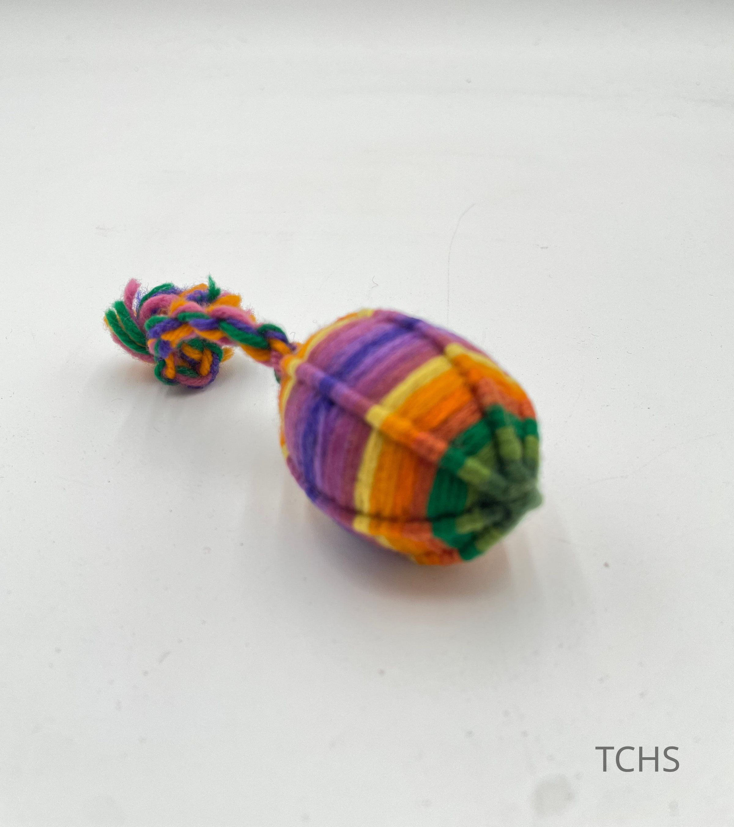 (a) crochet "pin ball" made by Minnie Galley, gifted to Phyllis Galley