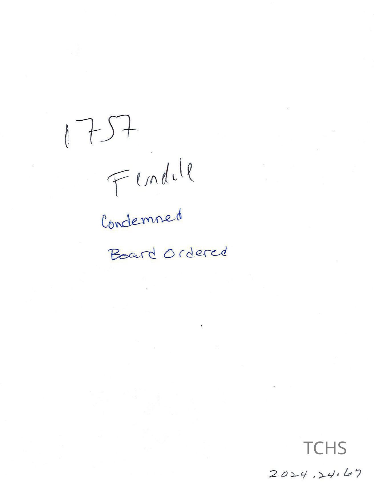 A photo printed on paper of a house at 1757 Ferndale Ave., 2012.Collection
