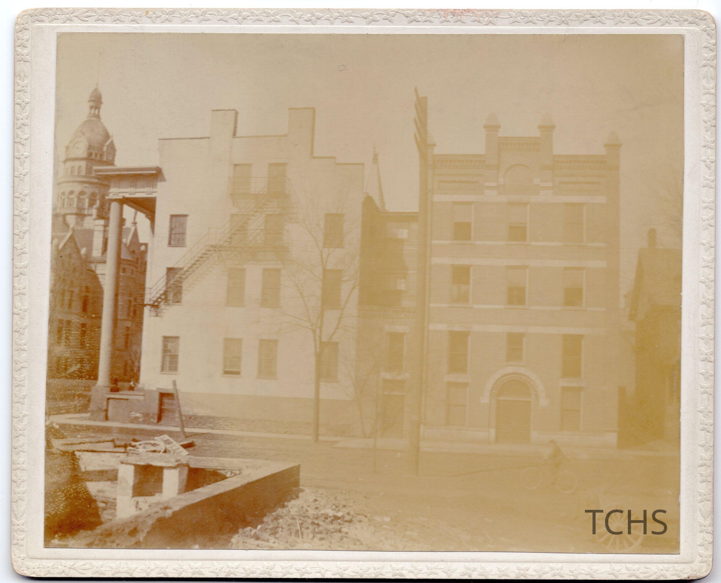 Street view of Dana's Musical Institute on Market Street in Warren. Written on back, "Florence Ackley, Warren, Ohio 1898" and stamped property of W.D. Ackley.Location