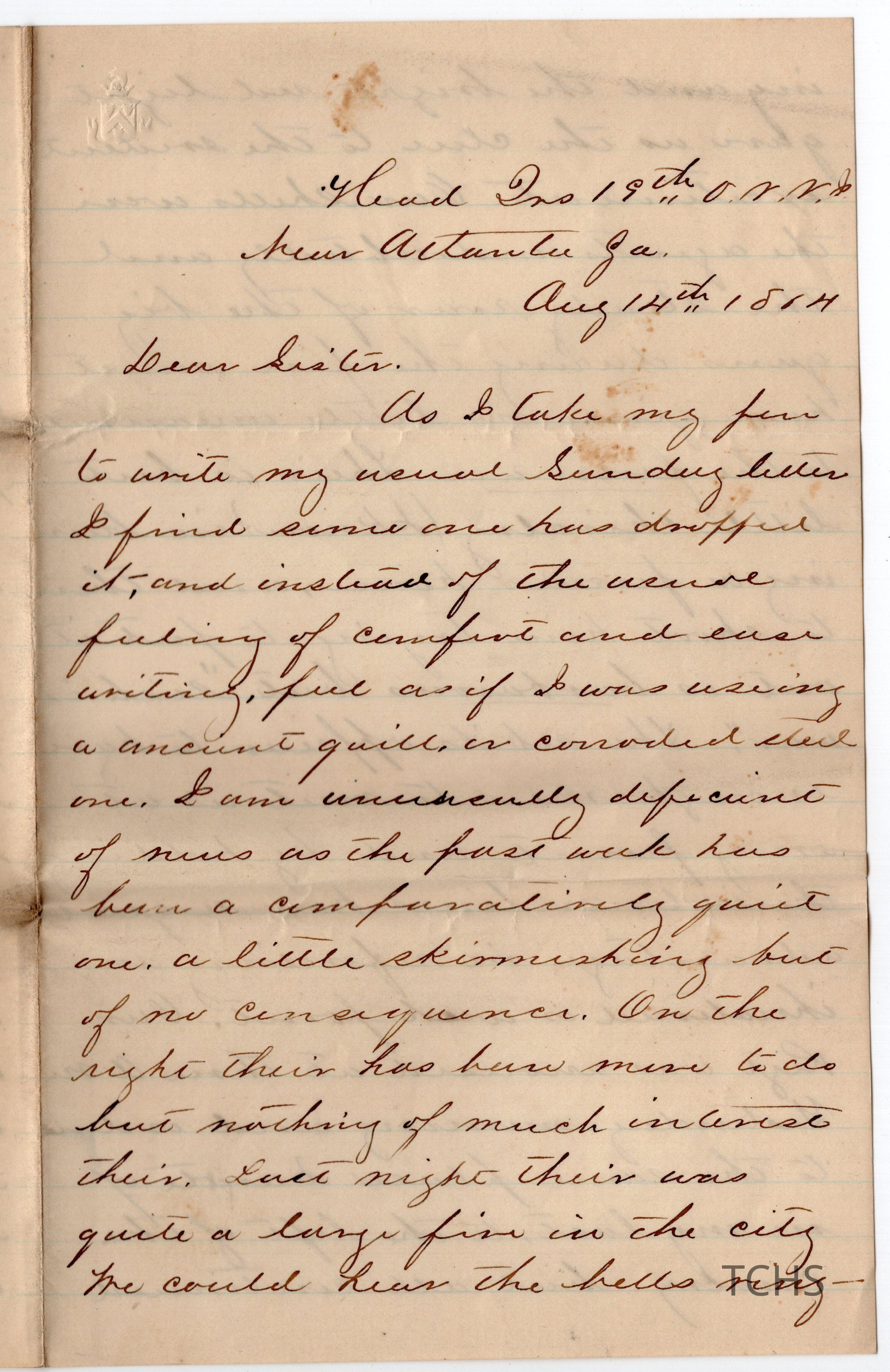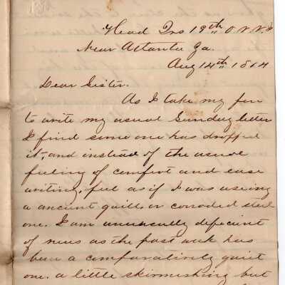 Letter, 2 pages, addressed "Dear Sister" "Near Atlanta Ga." from Grace.Collection