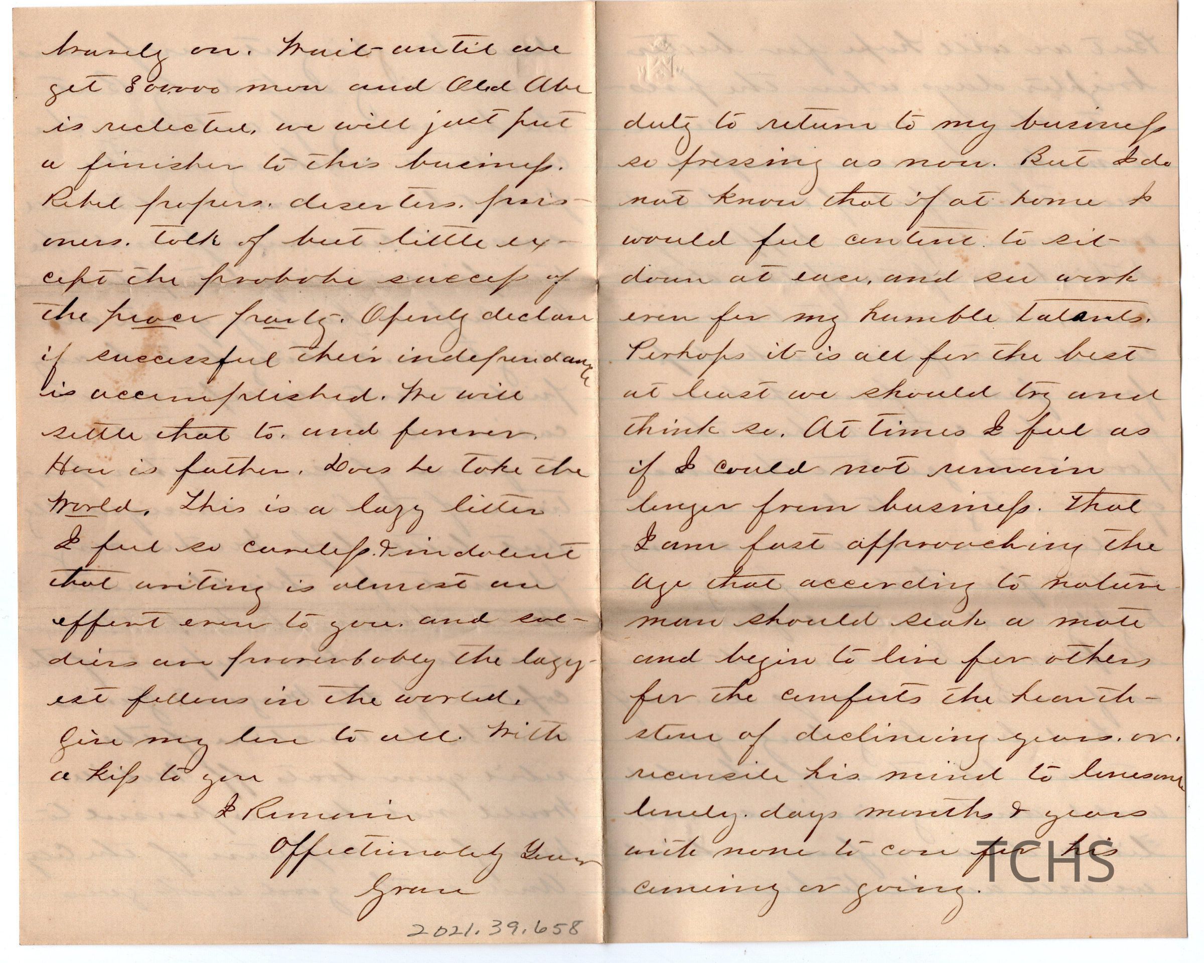 "Dear Sister" letter, 1864Entry/Object ID