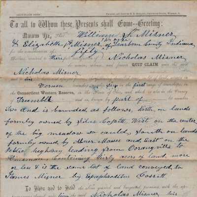 Deed from William S. and Elizabeth Mizener to Nicholas Mizener