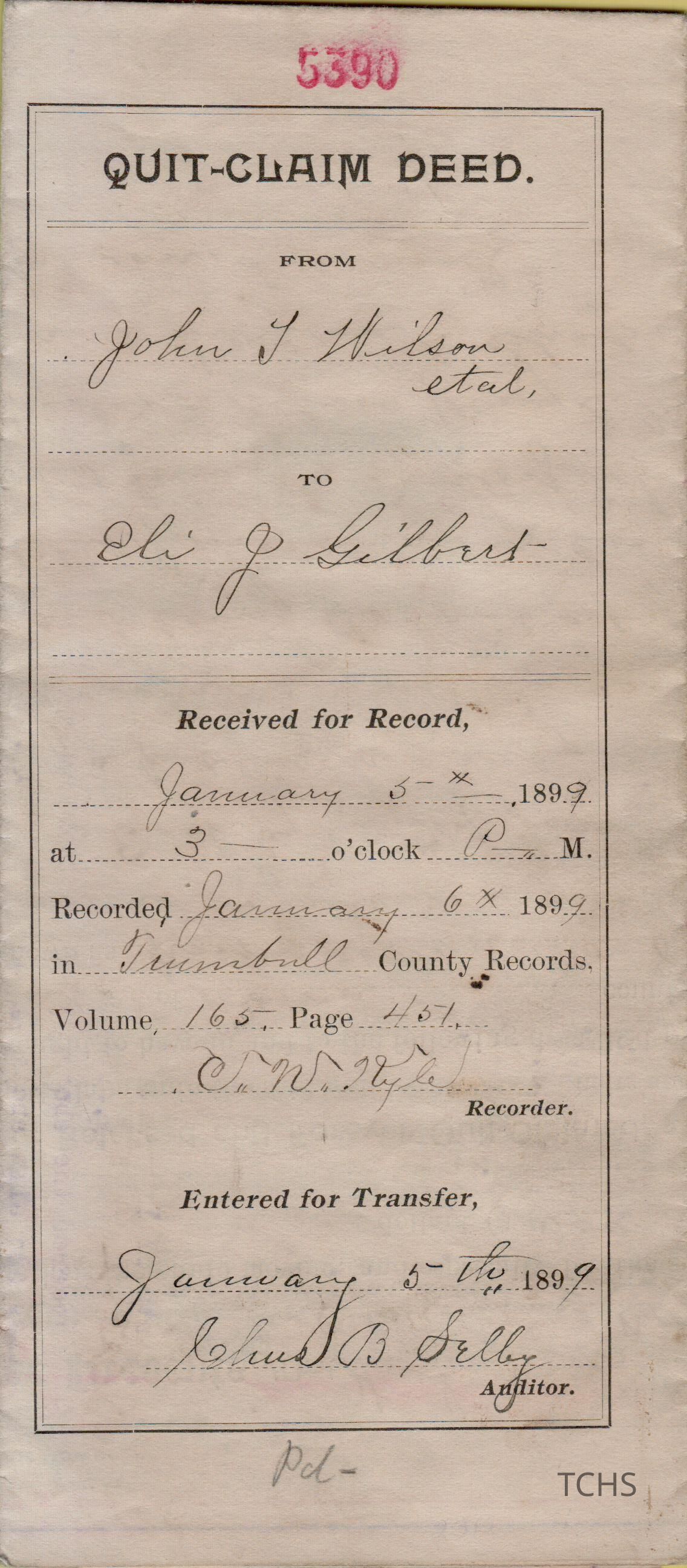 Quit claim deed from John Wilson, et al, to Eli J. Gilbert