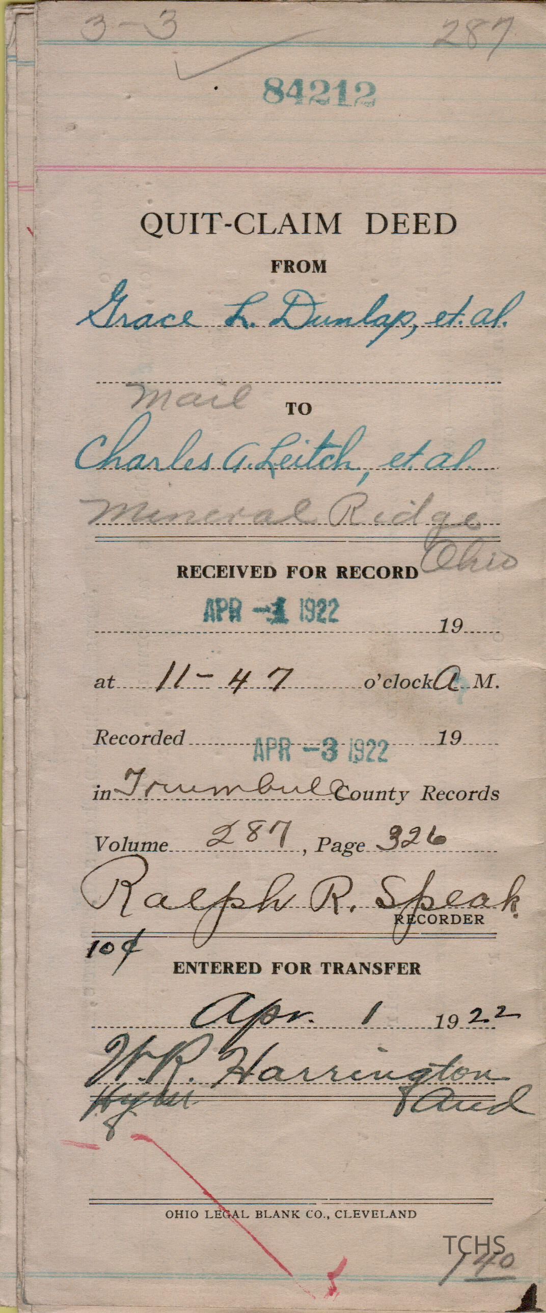 Dunlap, Grace L., Dunlap, James W., Thomas, Minnie W., Thomas, Thomas C., Elder, Edna M., Elder, John M., Tibbetts, Clara A., Tibbetts, Edwin H., Patterson, Blanche P., Patterson, Norman E., Leitch, Charles A., Leitch, Frances E., Leitch, Helen R., Speak, Ralph R., Harrington, W. B.