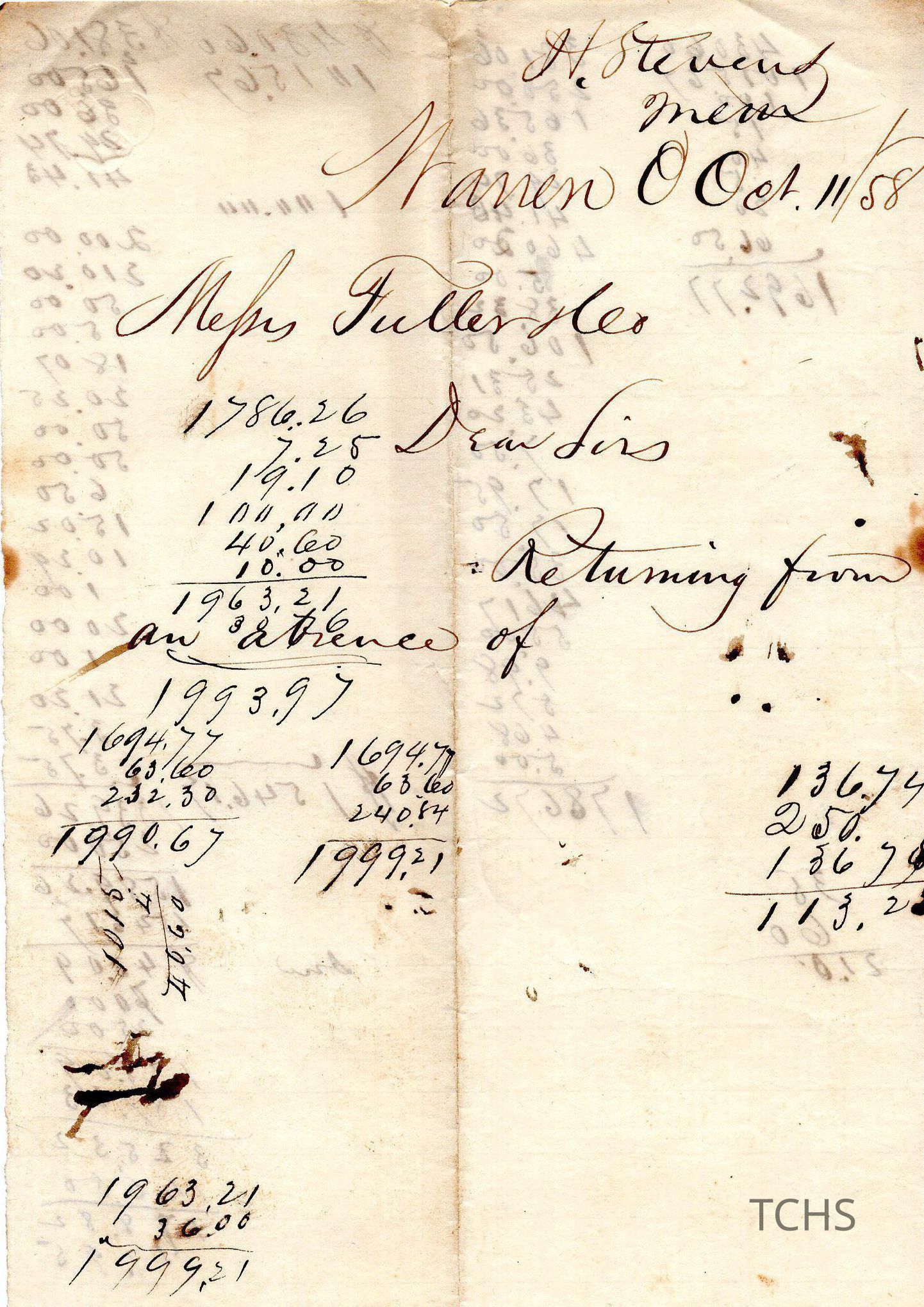 A letter written by H. Stevens dated October 11th, 1858.Location
