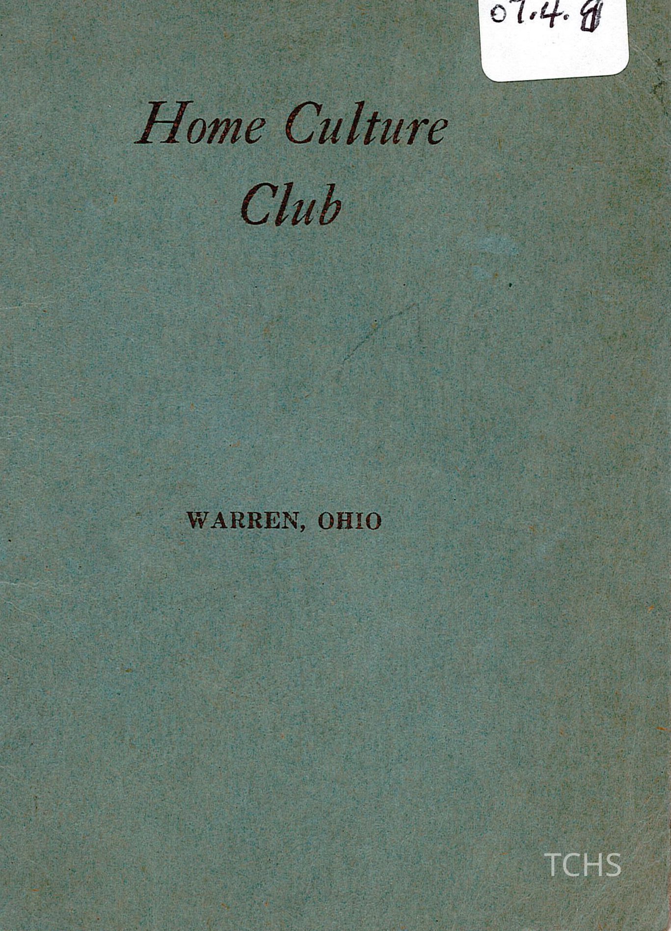 Home Culture Club, 1931Entry/Object ID