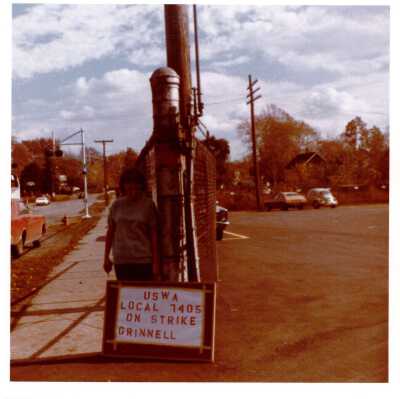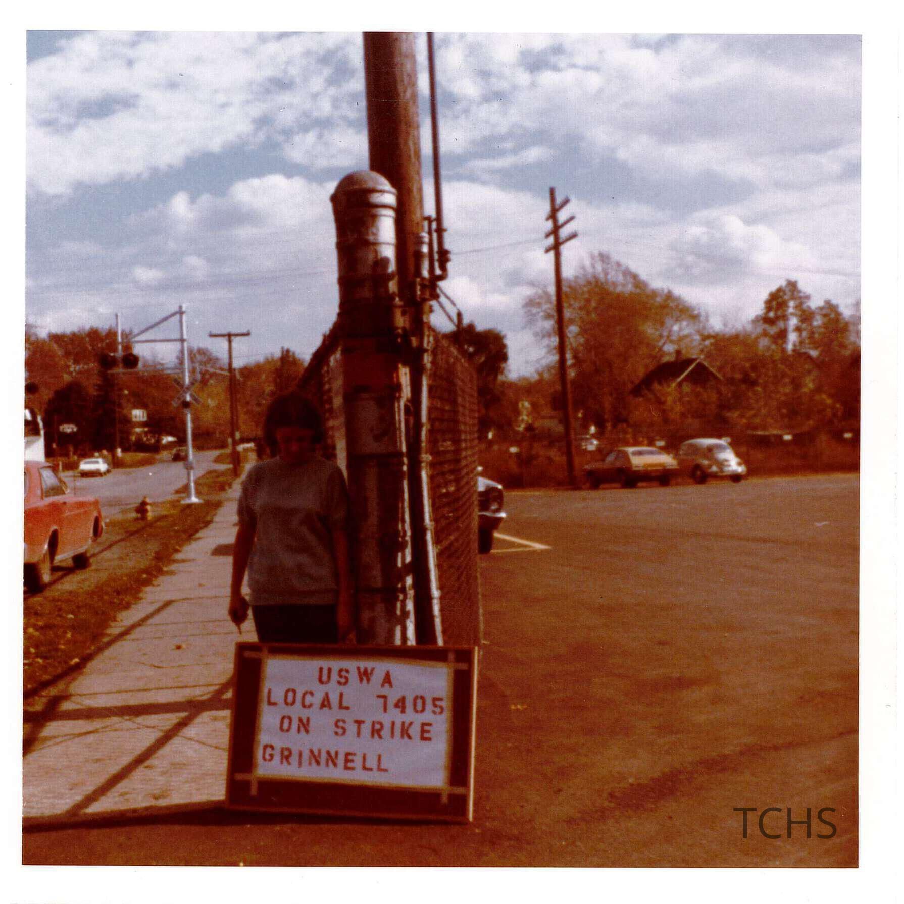 She stands behind a sign that reads "USWA Local 7405 On Strike Grinnell"Acquisition