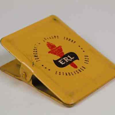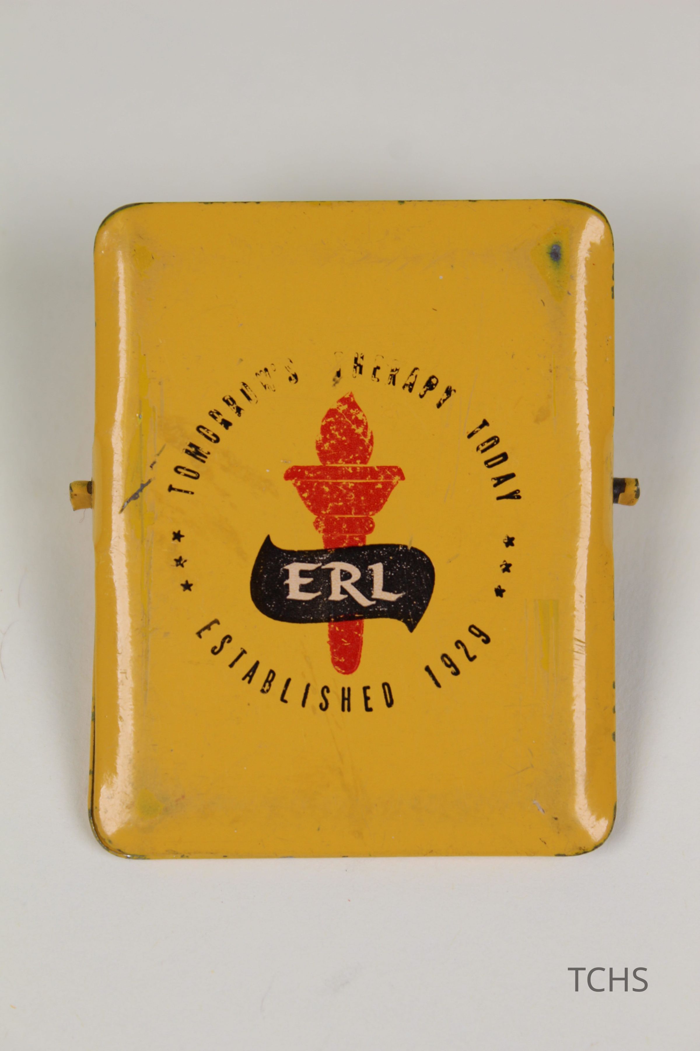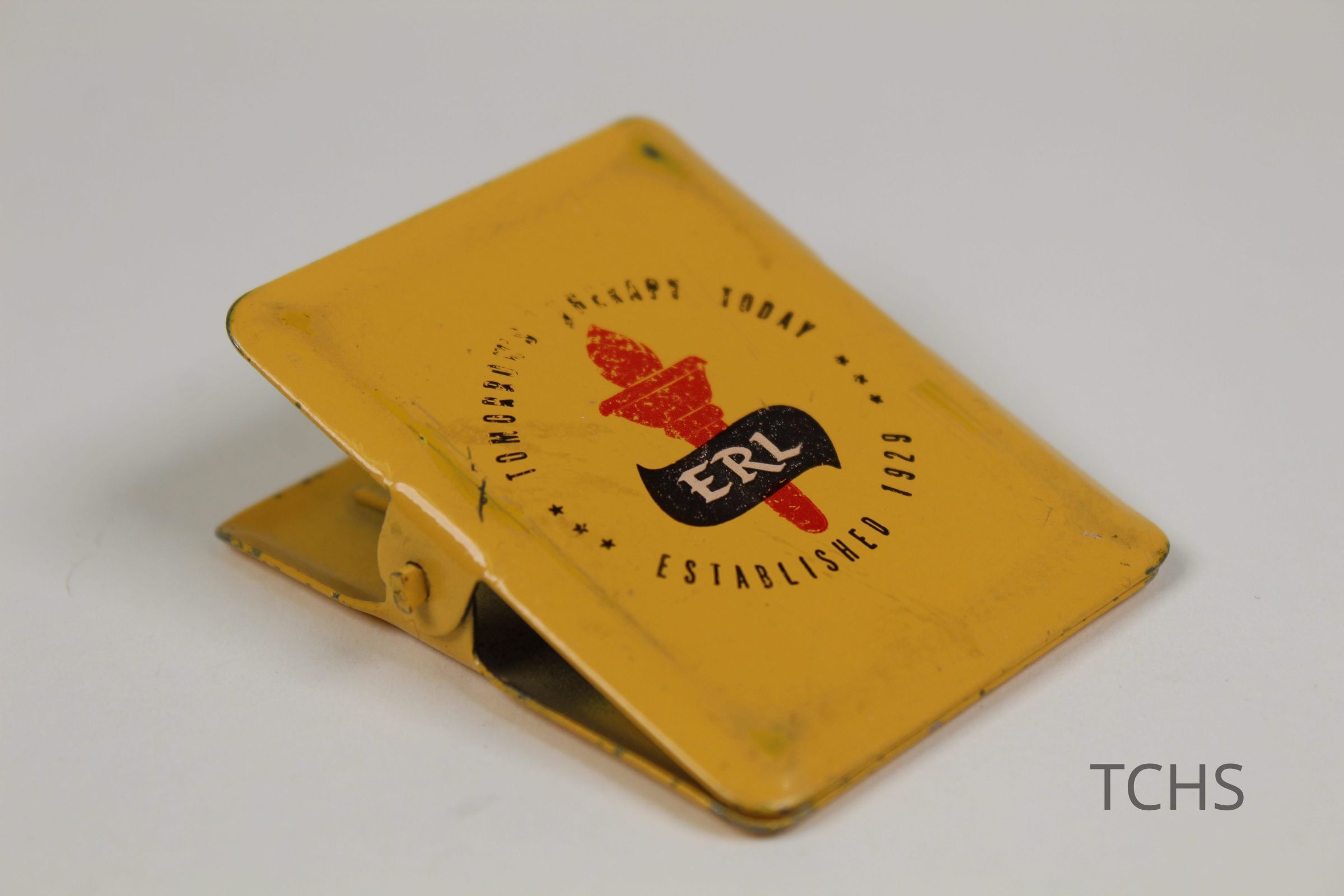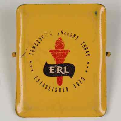 A yellow ERL clip with the slogan Tomorrows Therapy Today, established 1929 written around it.