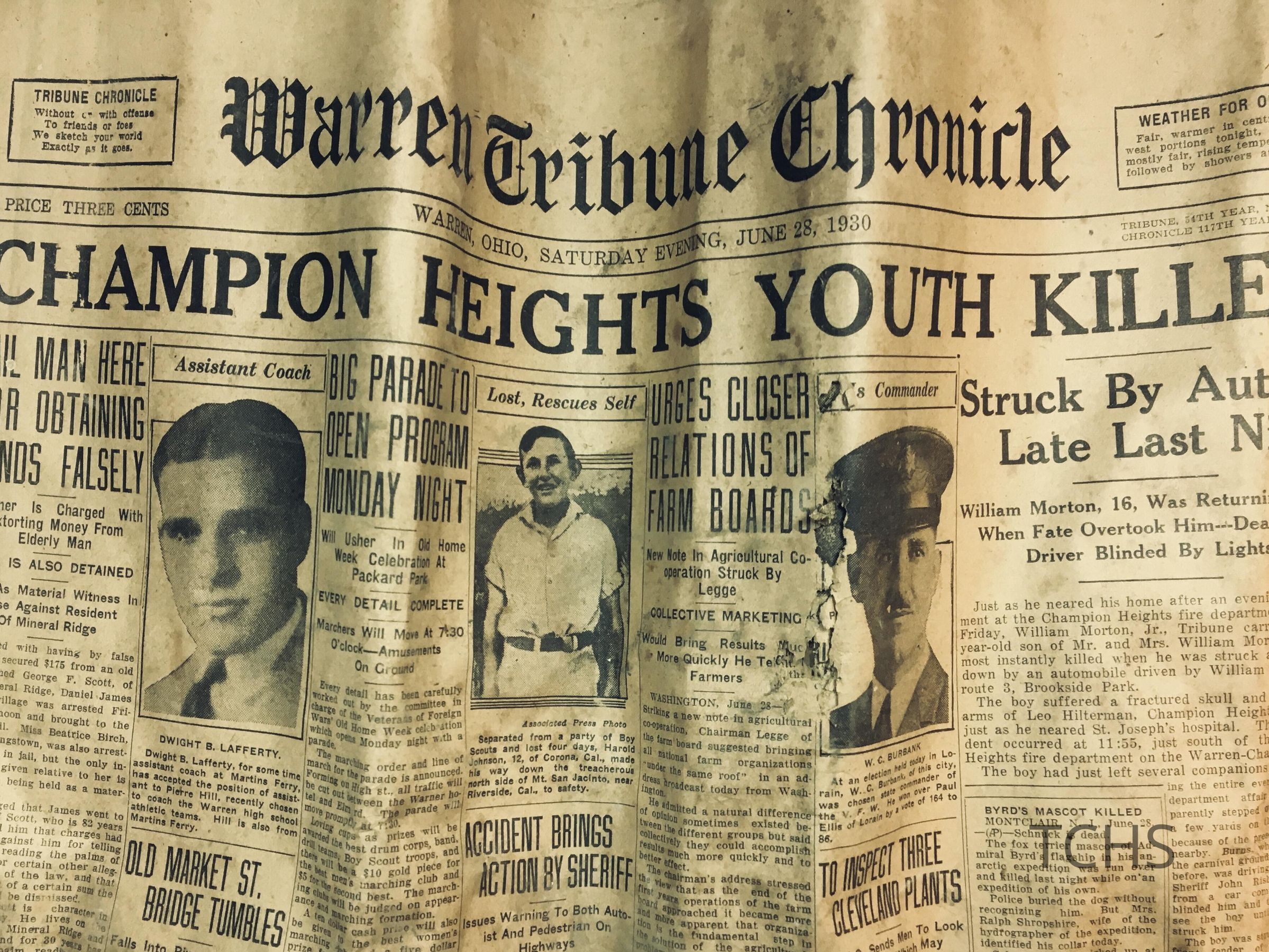 Warren Tribune Chronicle, dated June 28, 1930, found in the 1930 Eagles Time Capsule.Location