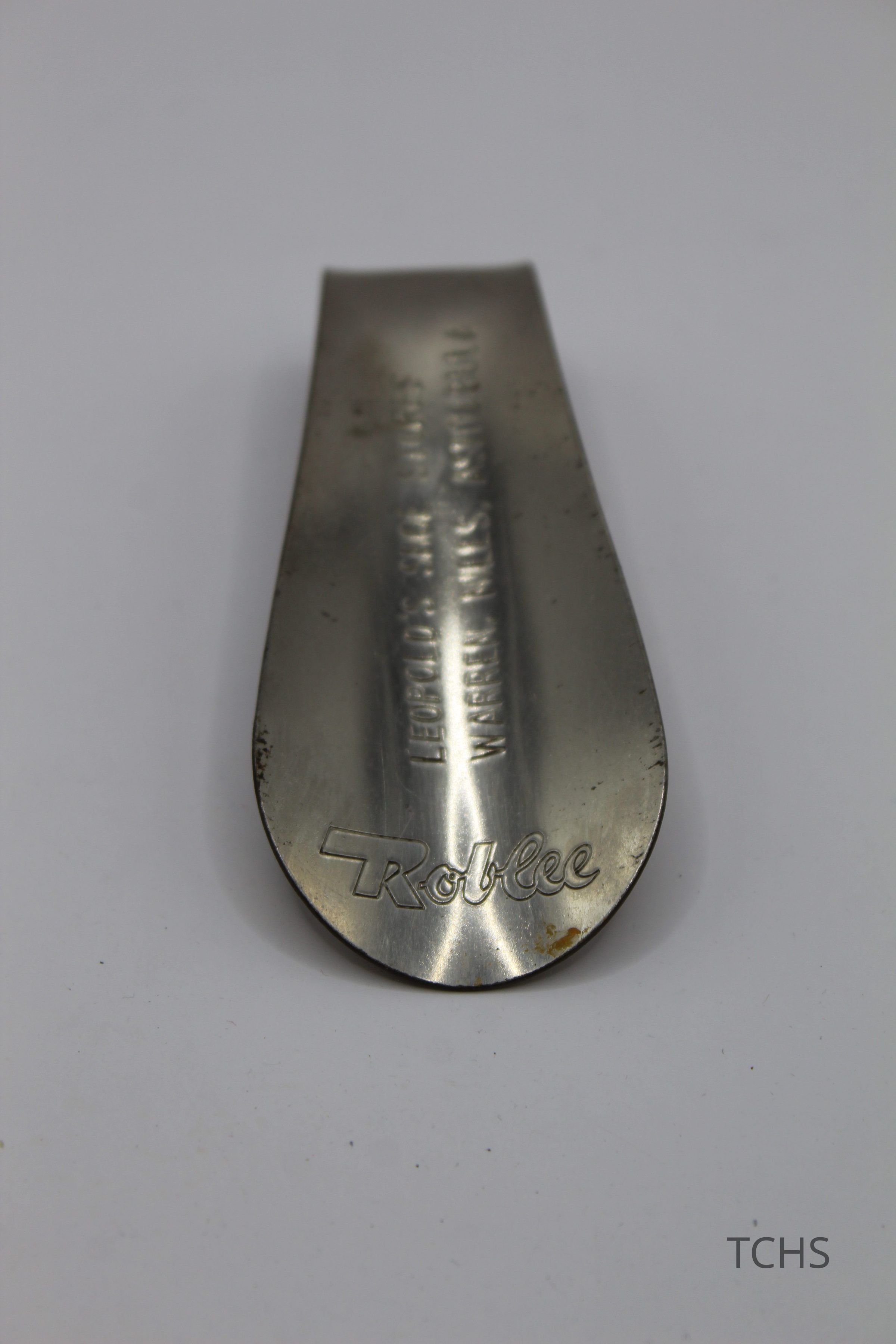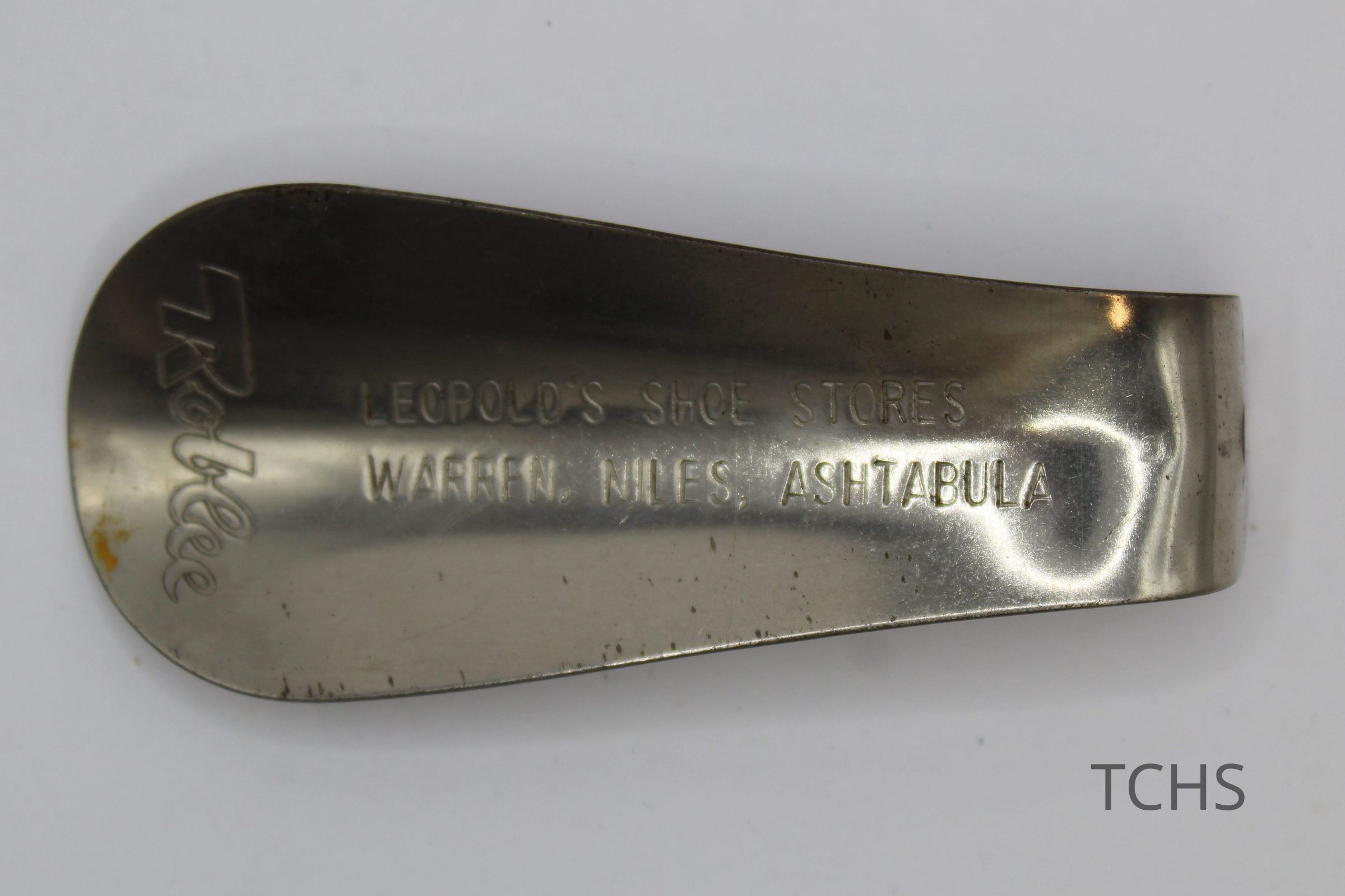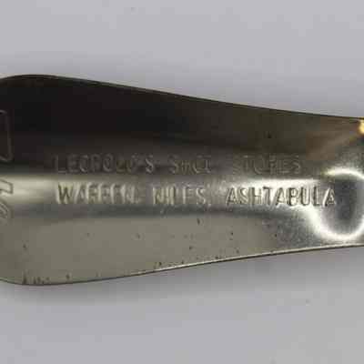 Metal shoe horn from Leopold's Shoe Store in Warren, Ohio. Leopold's also had locations in Niles and Ashtabula.