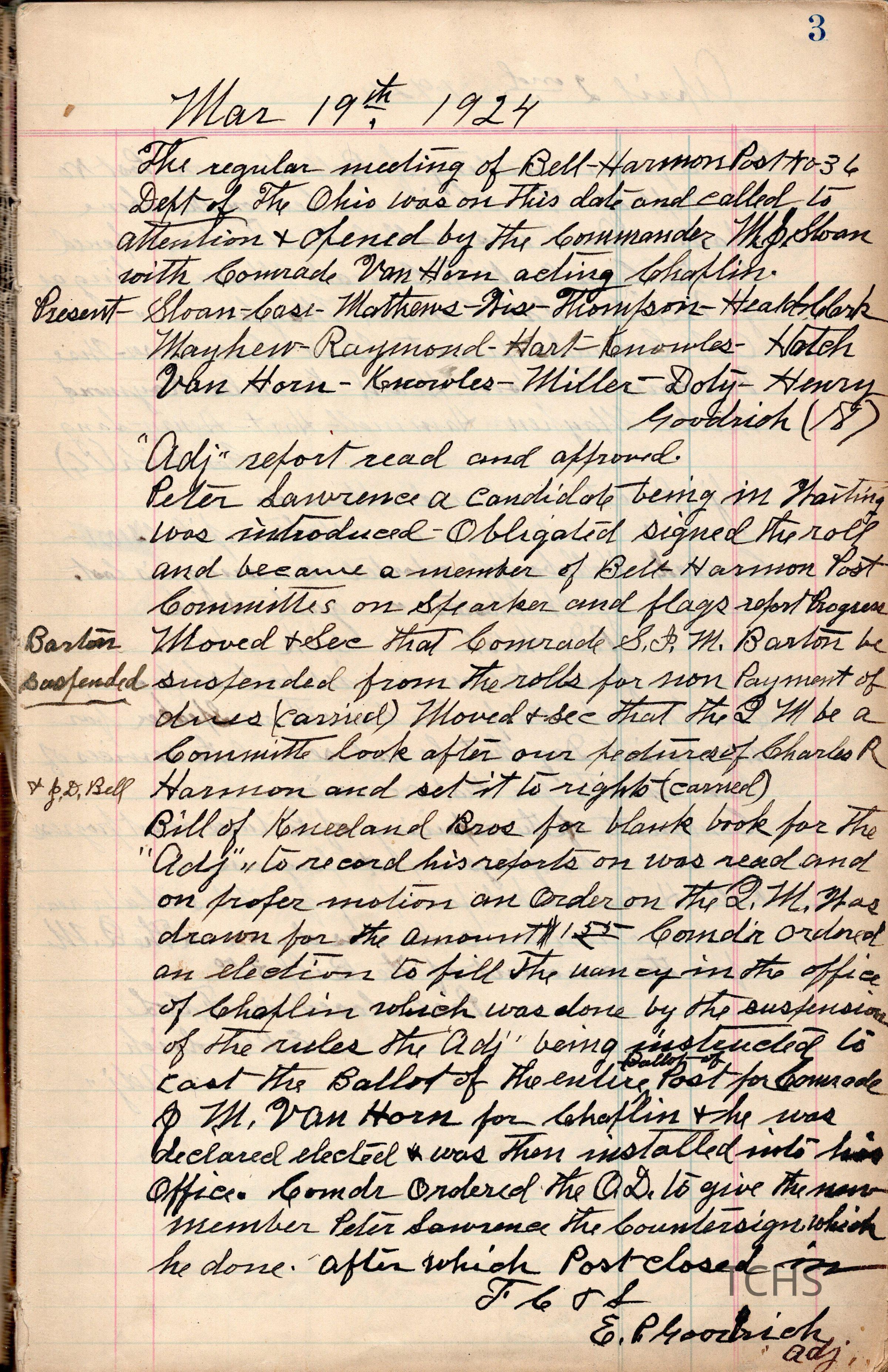 Ledger for Bell Harmon Post no. 36 GAR reports. Tape on spine.Book Details