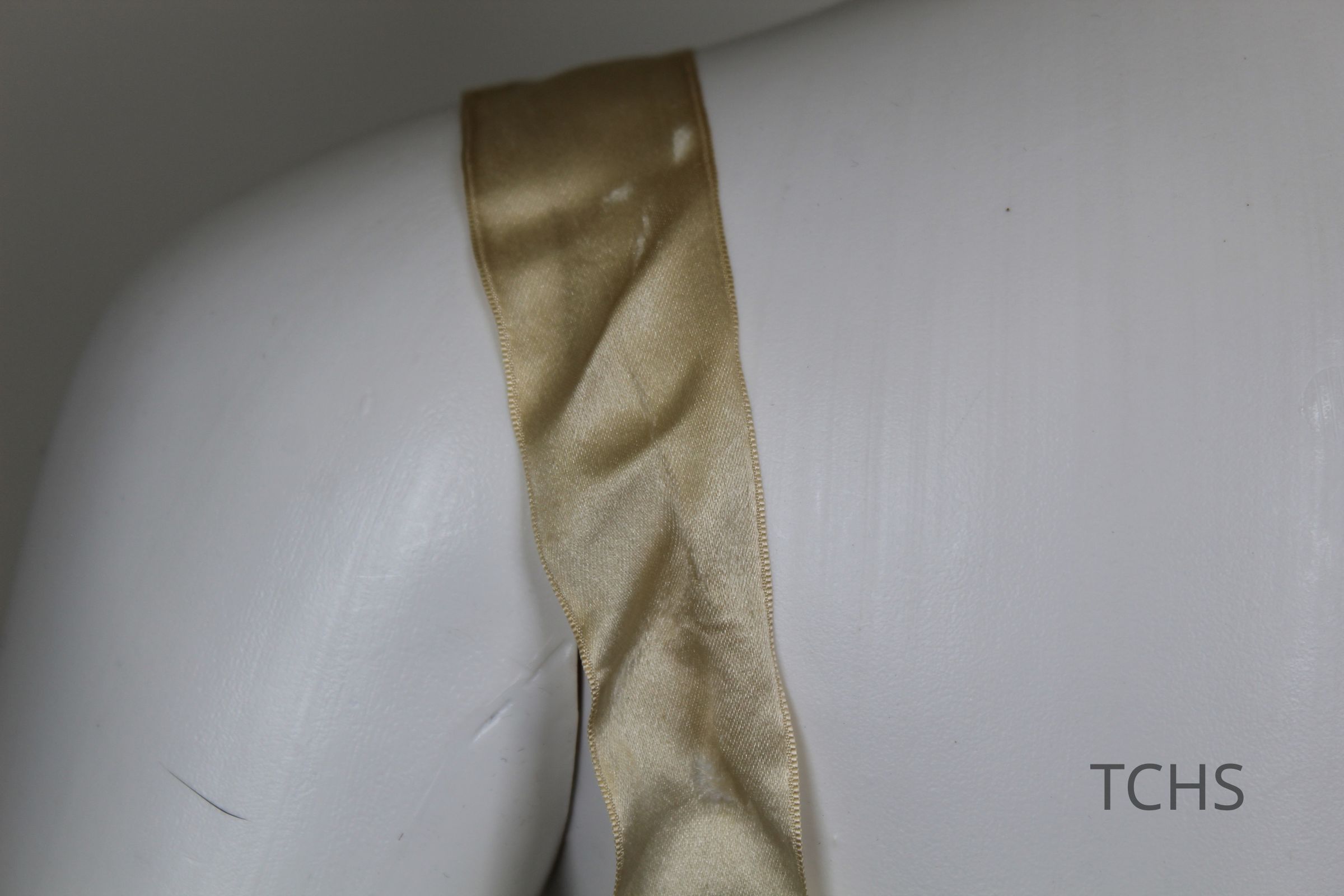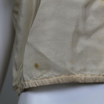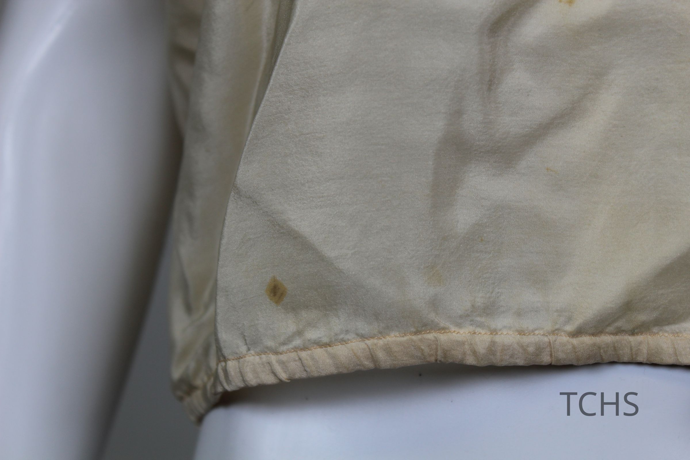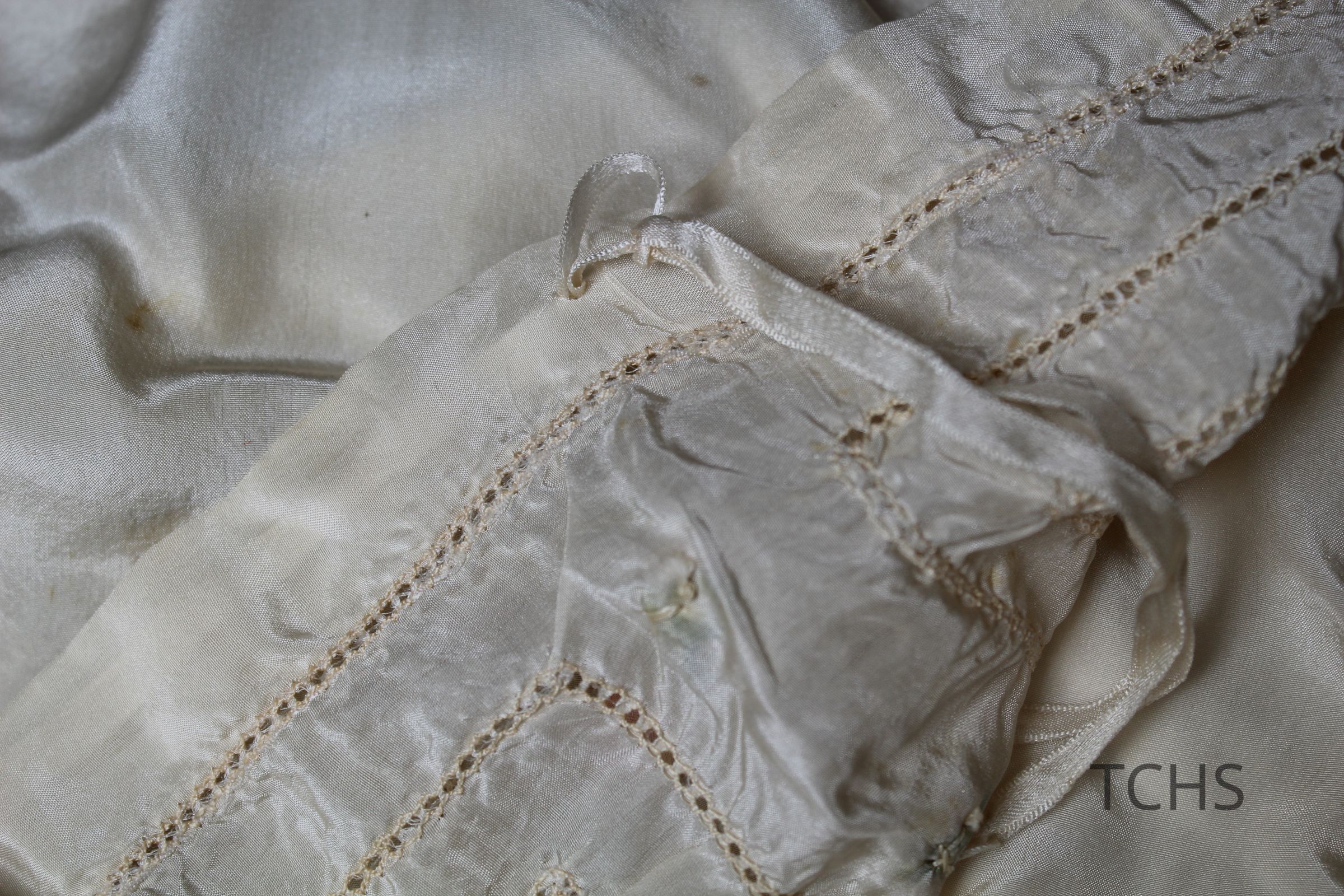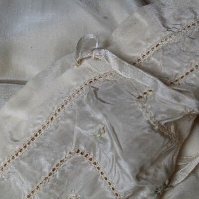 A ecru silk camisole top with three fabric rosebuds down the front.