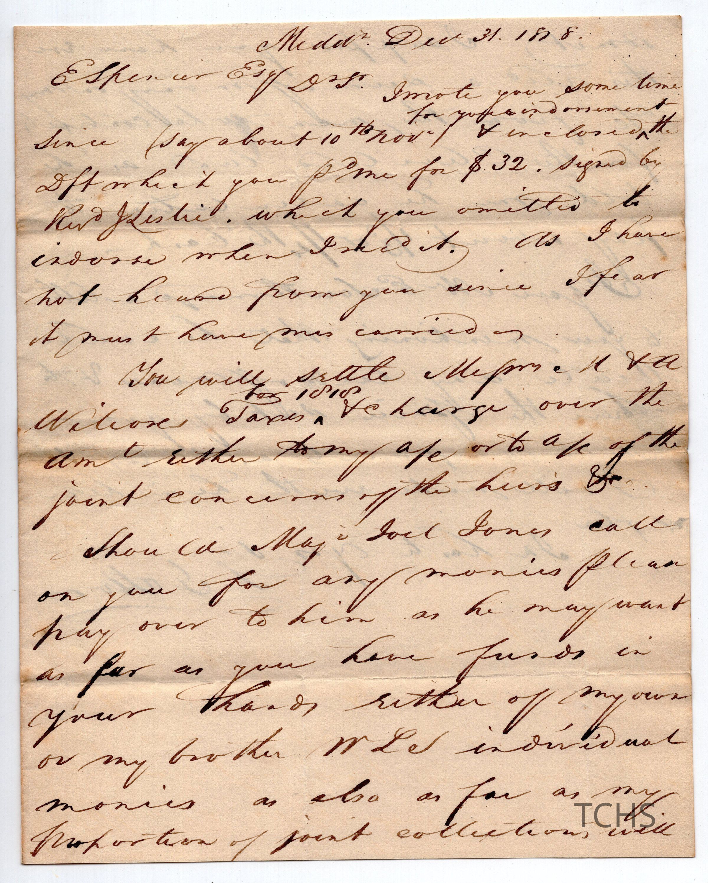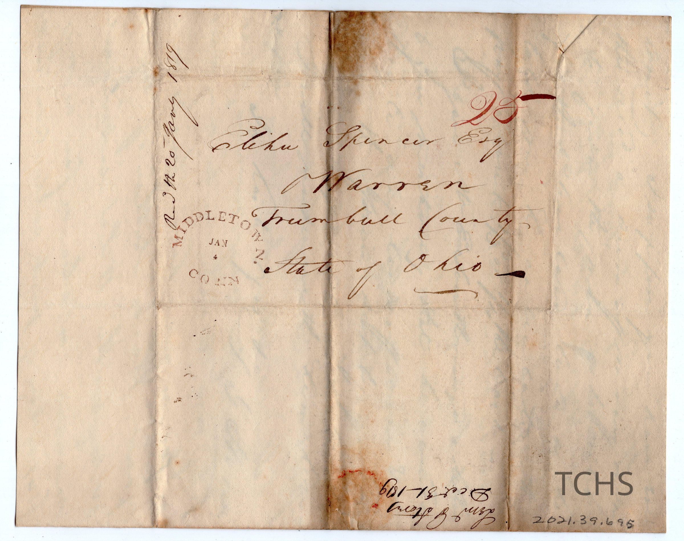 Letter written to Elisha Spencer of Warren. From L.G. Storr.Collection