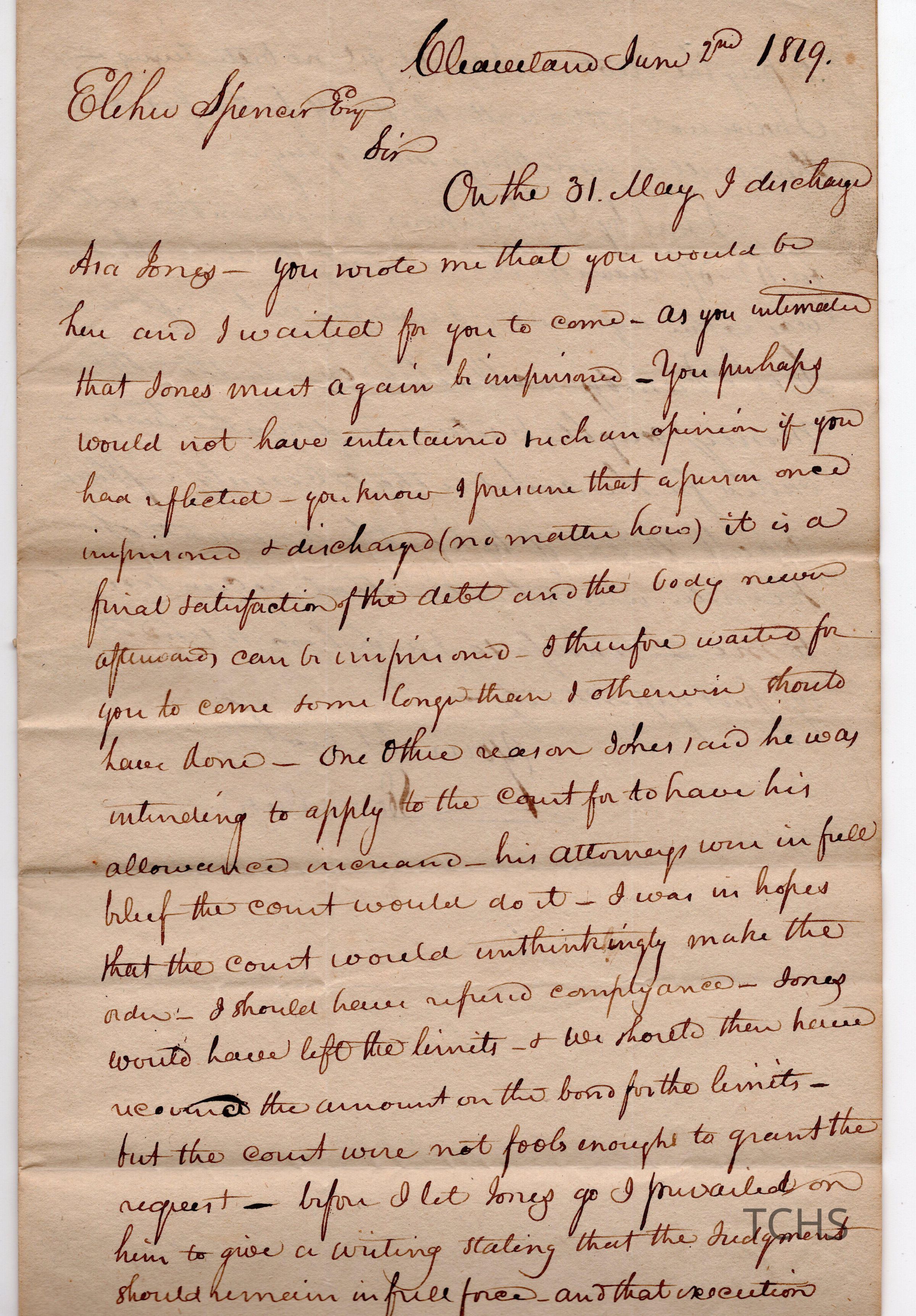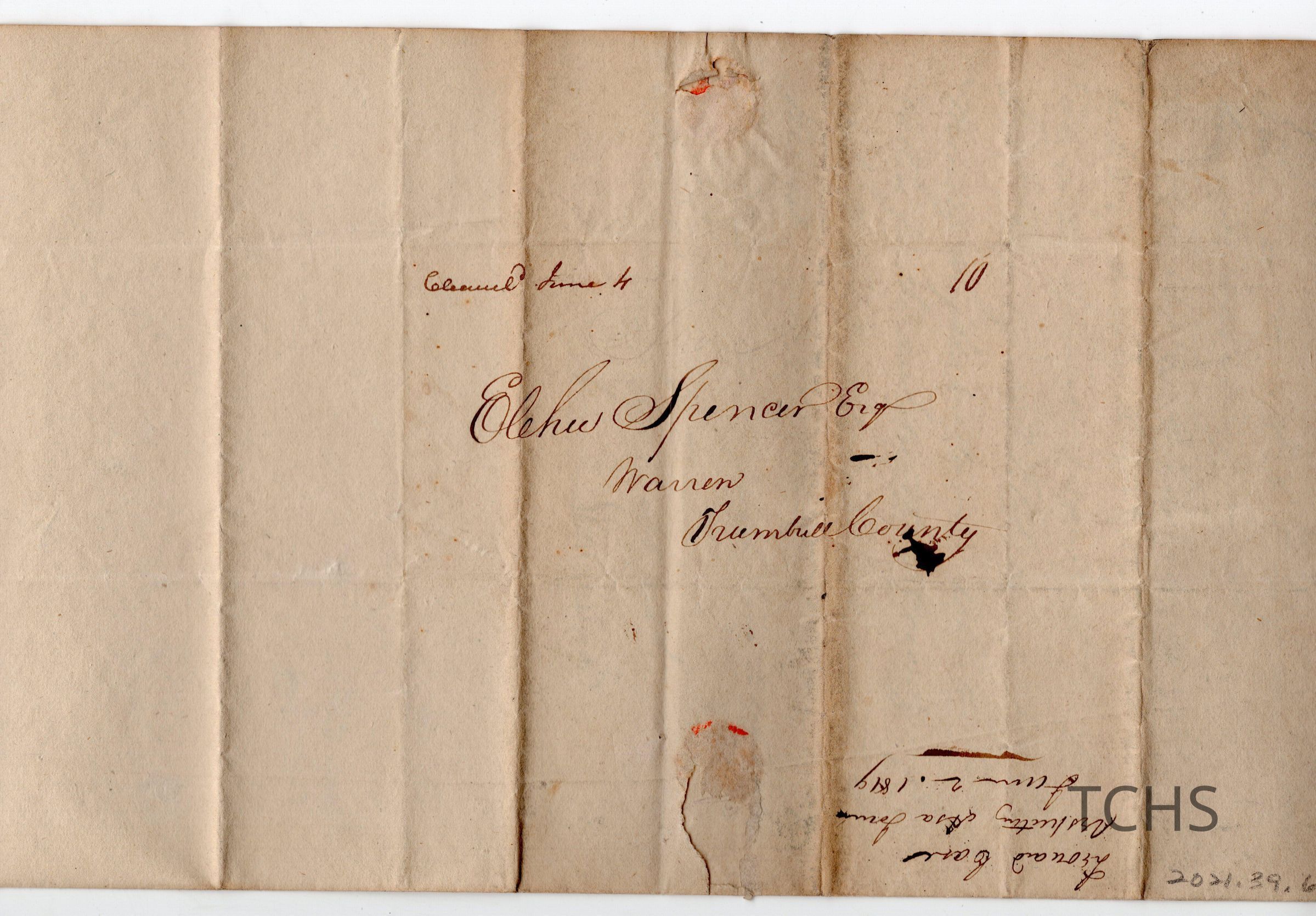 Letter written to Elisha Spencer of Warren. From Leonard Care.Collection