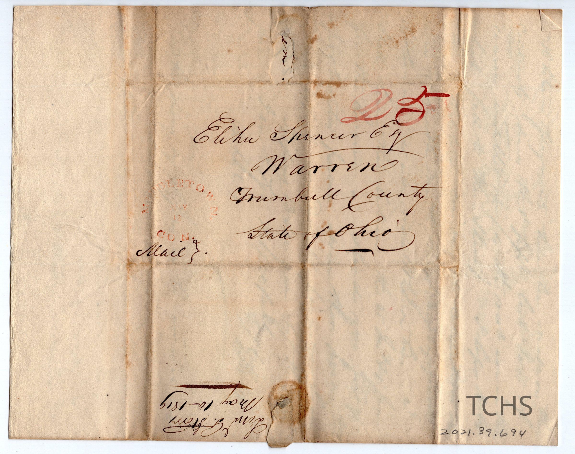 Letter written to Elisha Spencer of Warren. From L.G. Storr.Collection