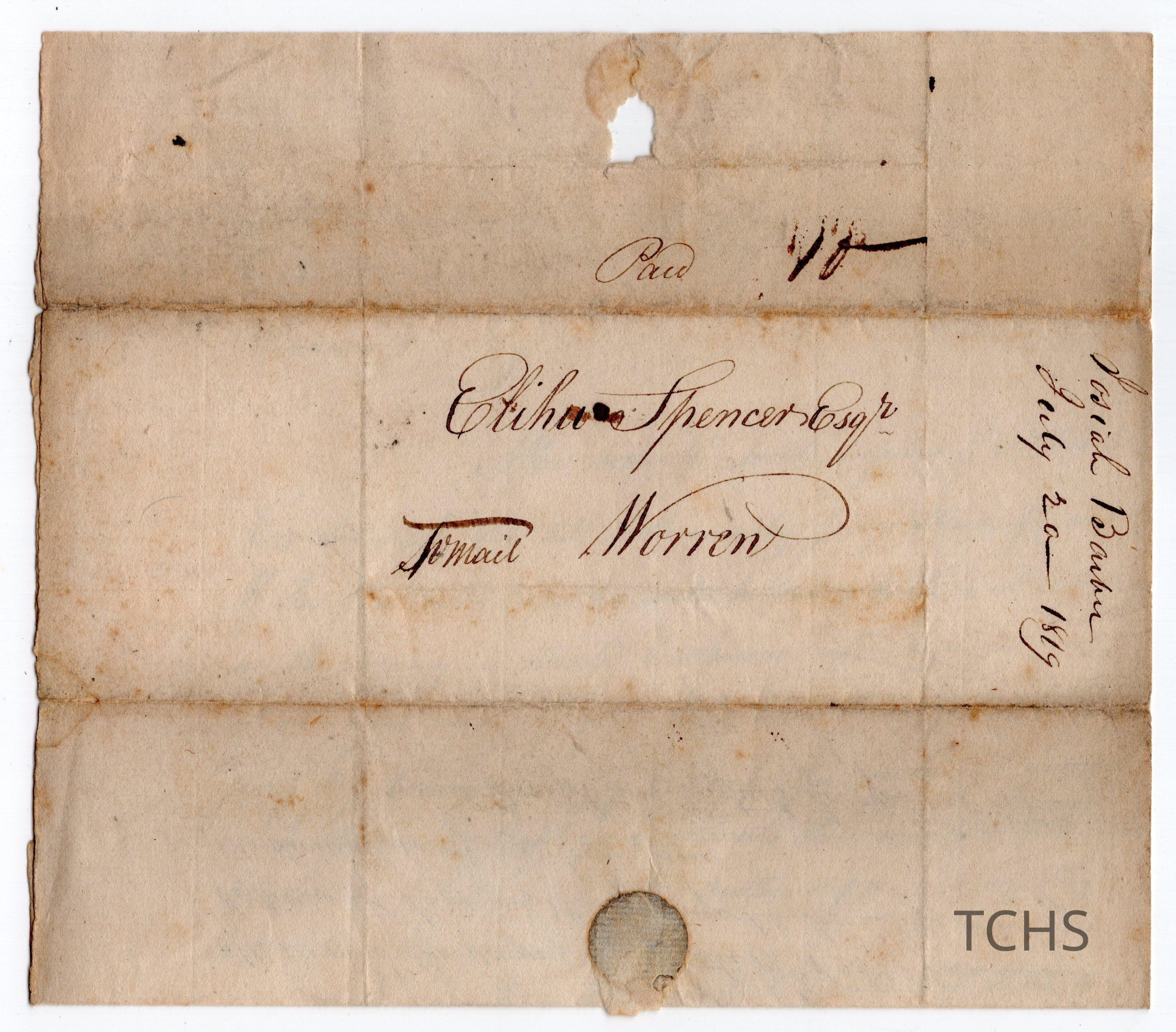 Elisha Spencer letter, 1819Entry/Object ID