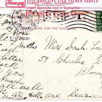 Postcard of Elm Street School addressed to Sarah LoughrenAcquisition