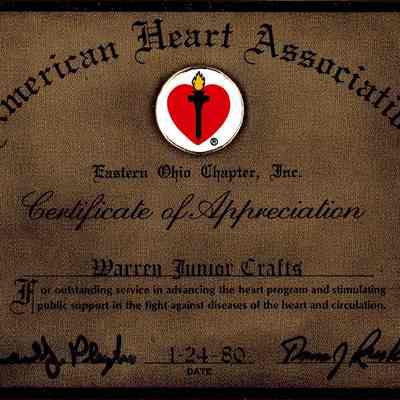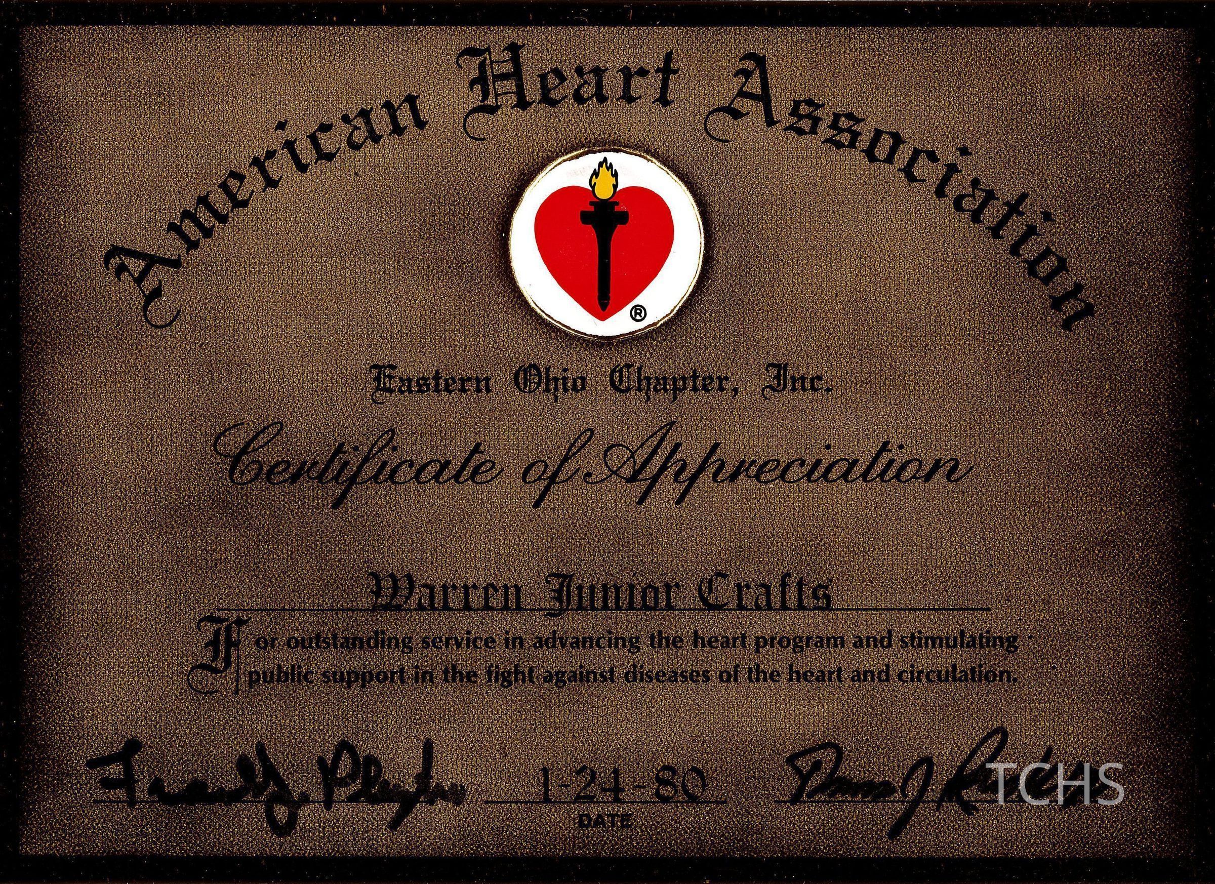 Junior Crafts certificate of appreciation from American Heart Association 1-24-80Acquisition