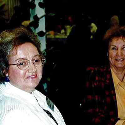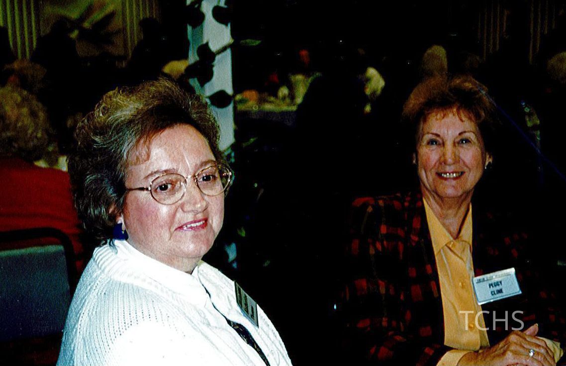 Trumbull Retired Teachers Association members Kathryn Thomas and Peggy Cline at the April 2003 meeting.Collection