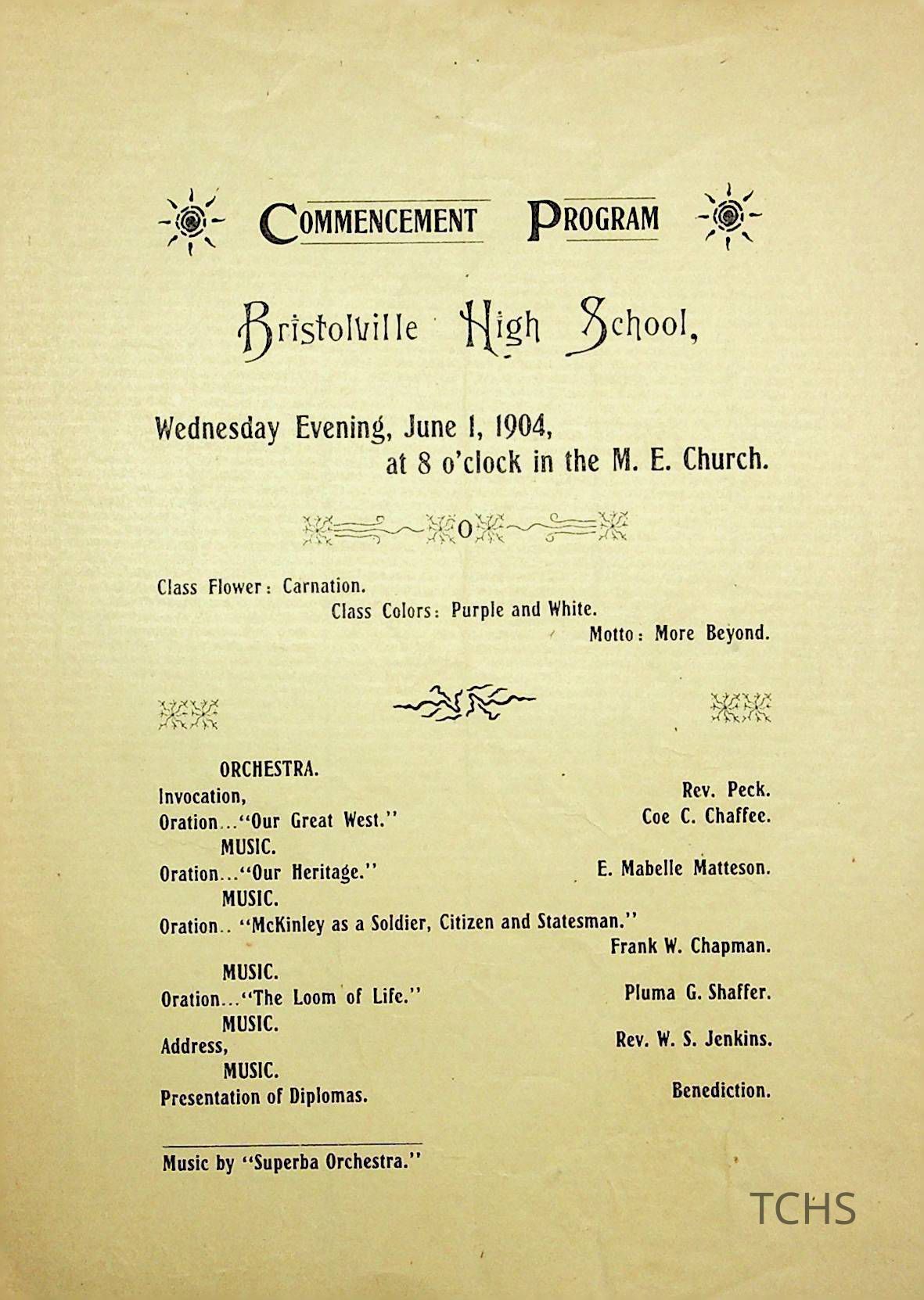 Bristolville High School Commencement dated June 1st, 1904.Location