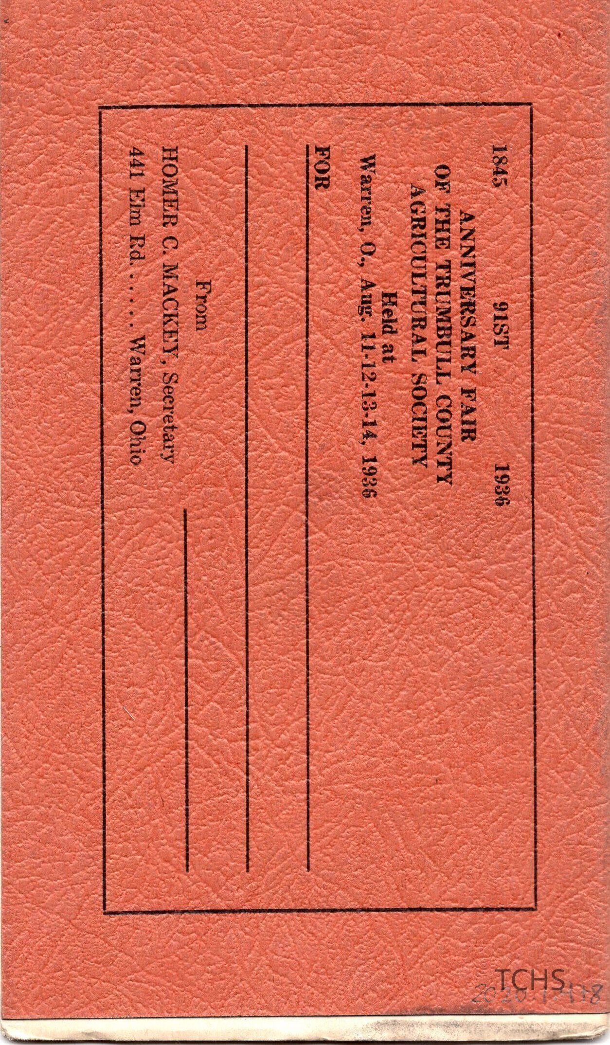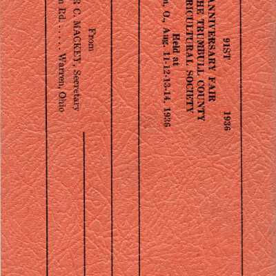The 91st anniversary fair of the Trumbull County Agricultural Society booklet in orangeLocation