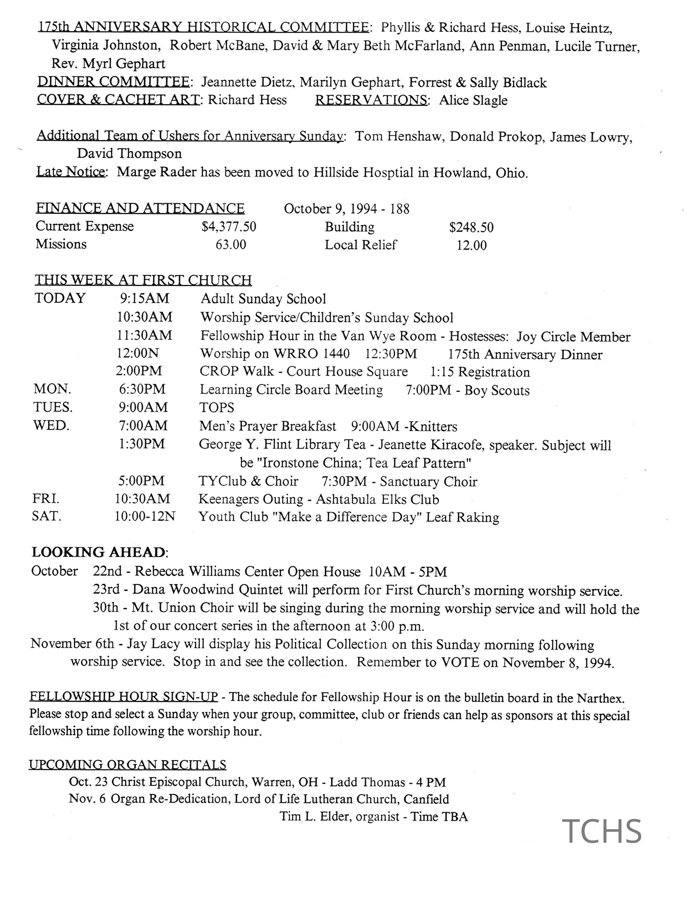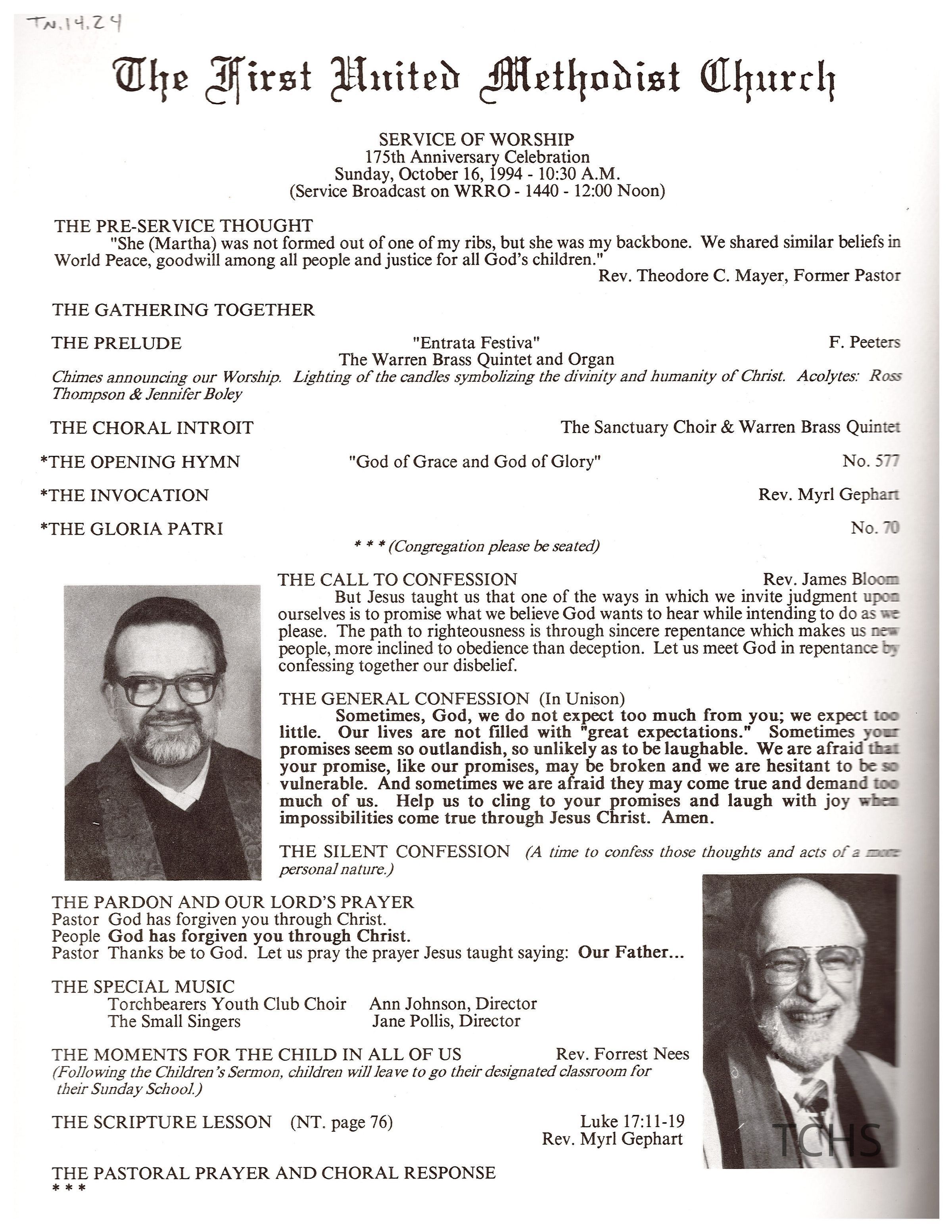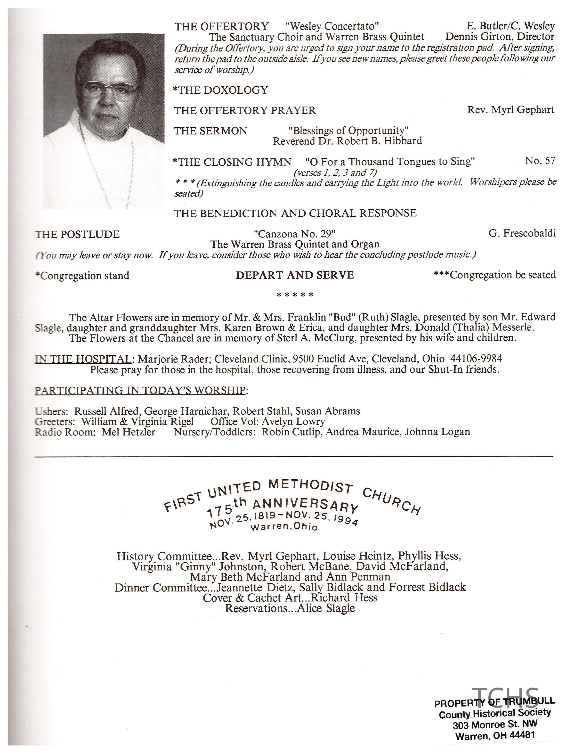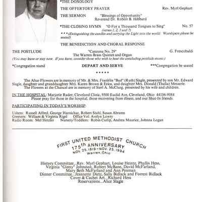 First United Methodist Church 175th Anniversary, 1994Entry/Object ID