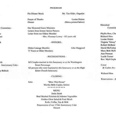 First United Methodist 175th Anniversary flyers and dinner program (3 pieces)Collection