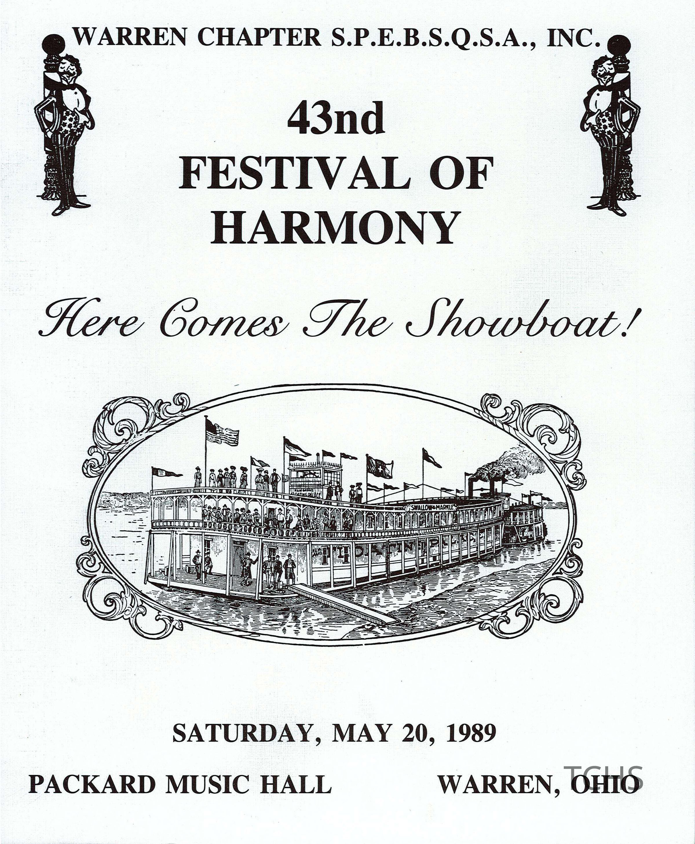 Festival of Harmony program, hosted by the Steven Foster Chorus, the Warren chapter of the SPEBSQSA (The Barbershop Harmony Society, legally and historically named the Society for the Preservation and Encouragement of Barber Shop Quartet Singing in America, Inc.)Acquisition