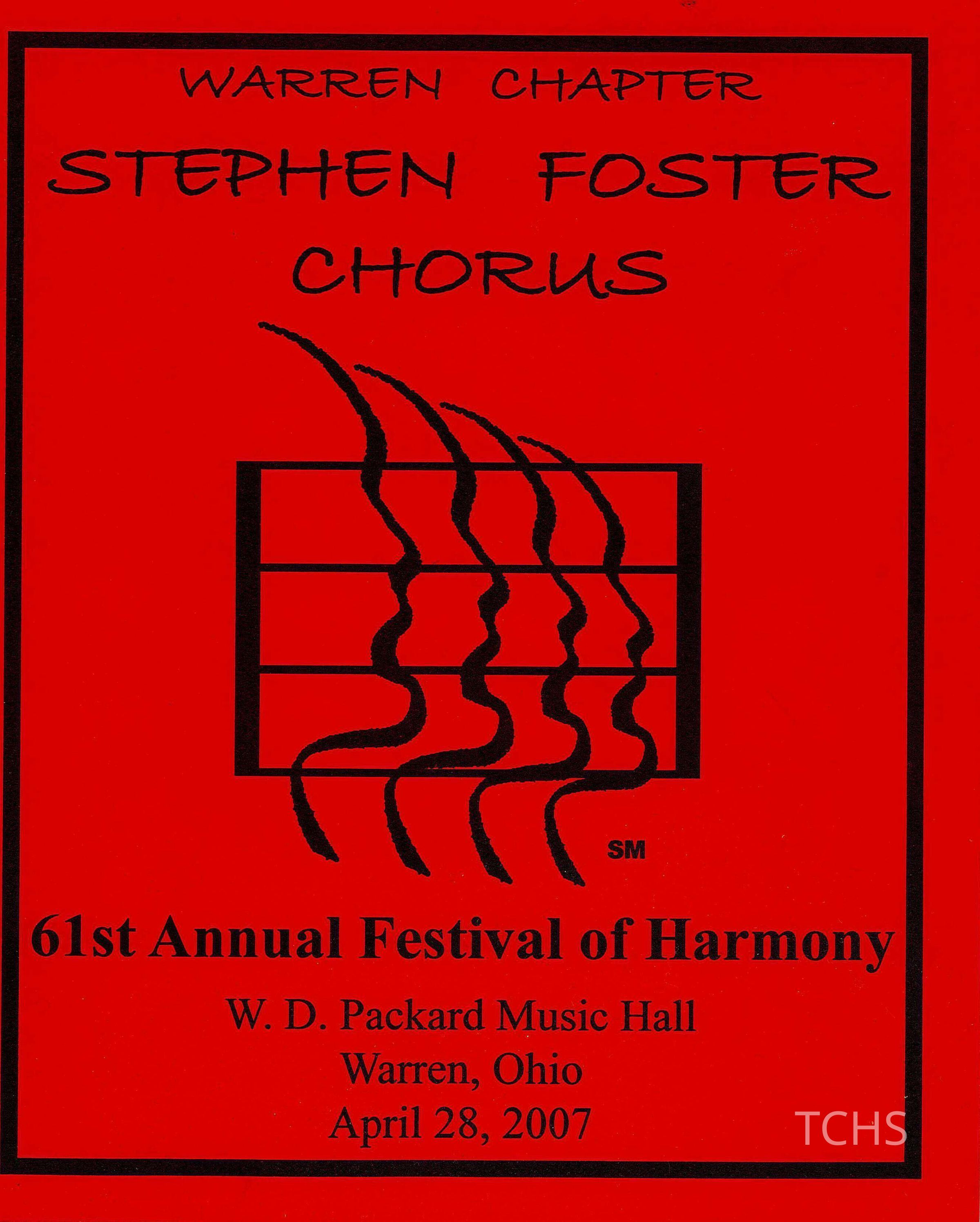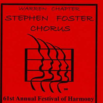 Festival of Harmony program, hosted by the Steven Foster Chorus, the Warren chapter of the SPEBSQSA (The Barbershop Harmony Society, legally and historically named the Society for the Preservation and Encouragement of Barber Shop Quartet Singing in America, Inc.)