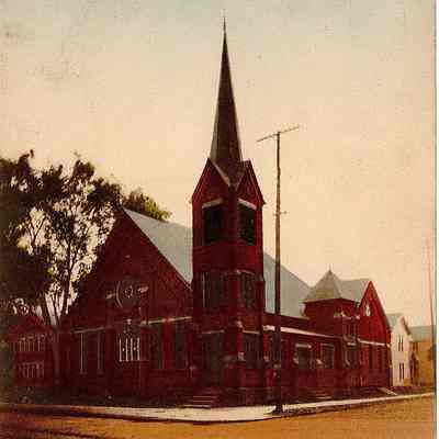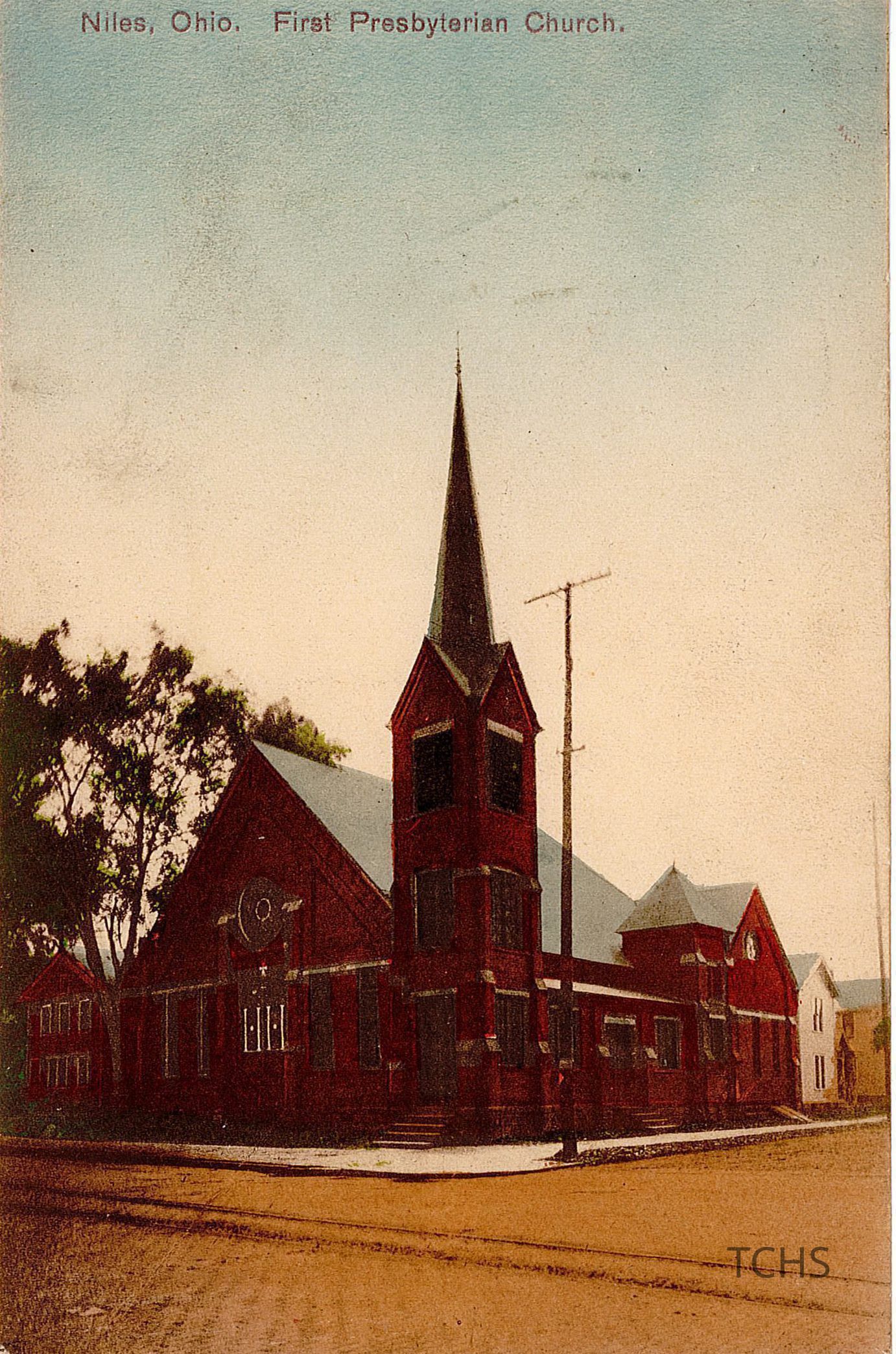 Postcard showing the First Presbyterian Church in Niles, Ohio