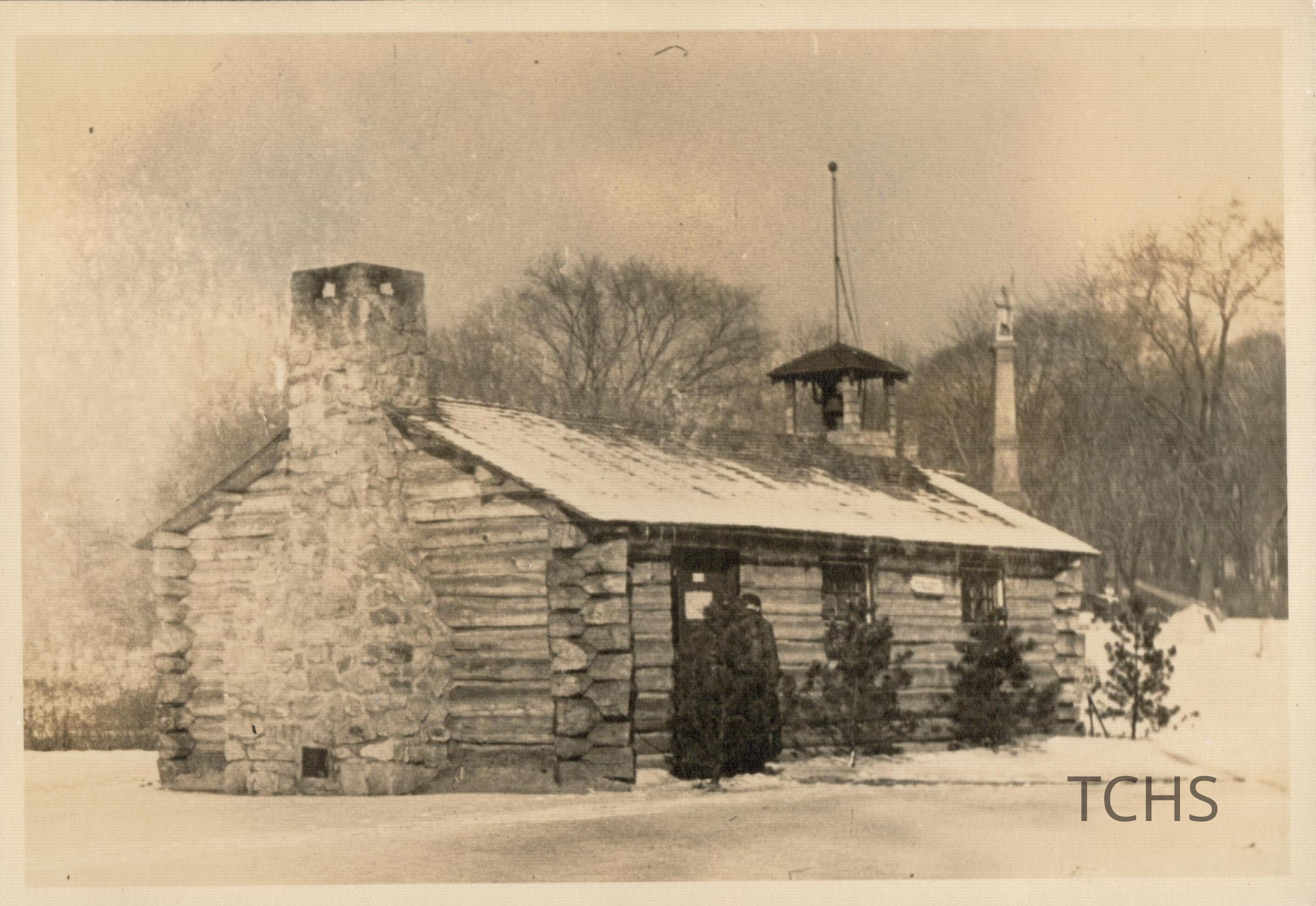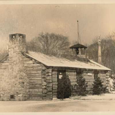 Log cabin replica of Warren's first schoolhouse, 2/3/1940Collection