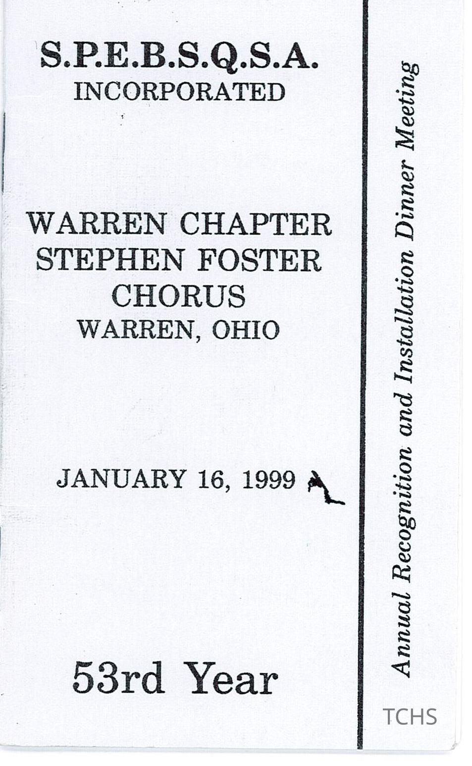 Stephen Foster Chorus program for the Annual Recognition and Installation Dinner Meeting.