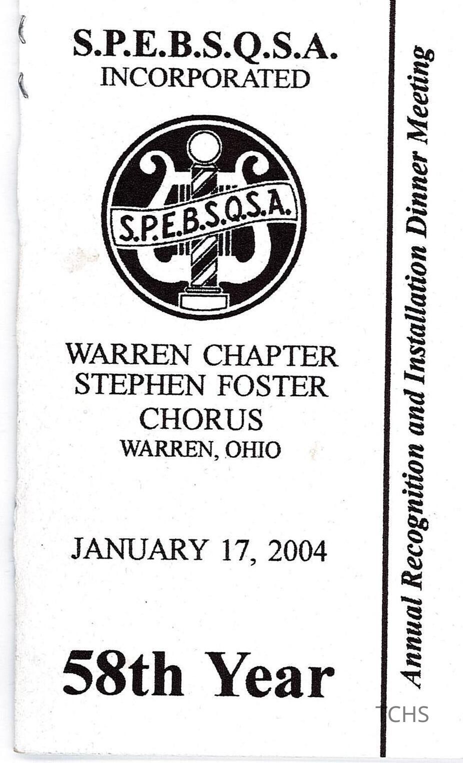 Stephen Foster Chorus program for the Annual Recognition and Installation Dinner Meeting.