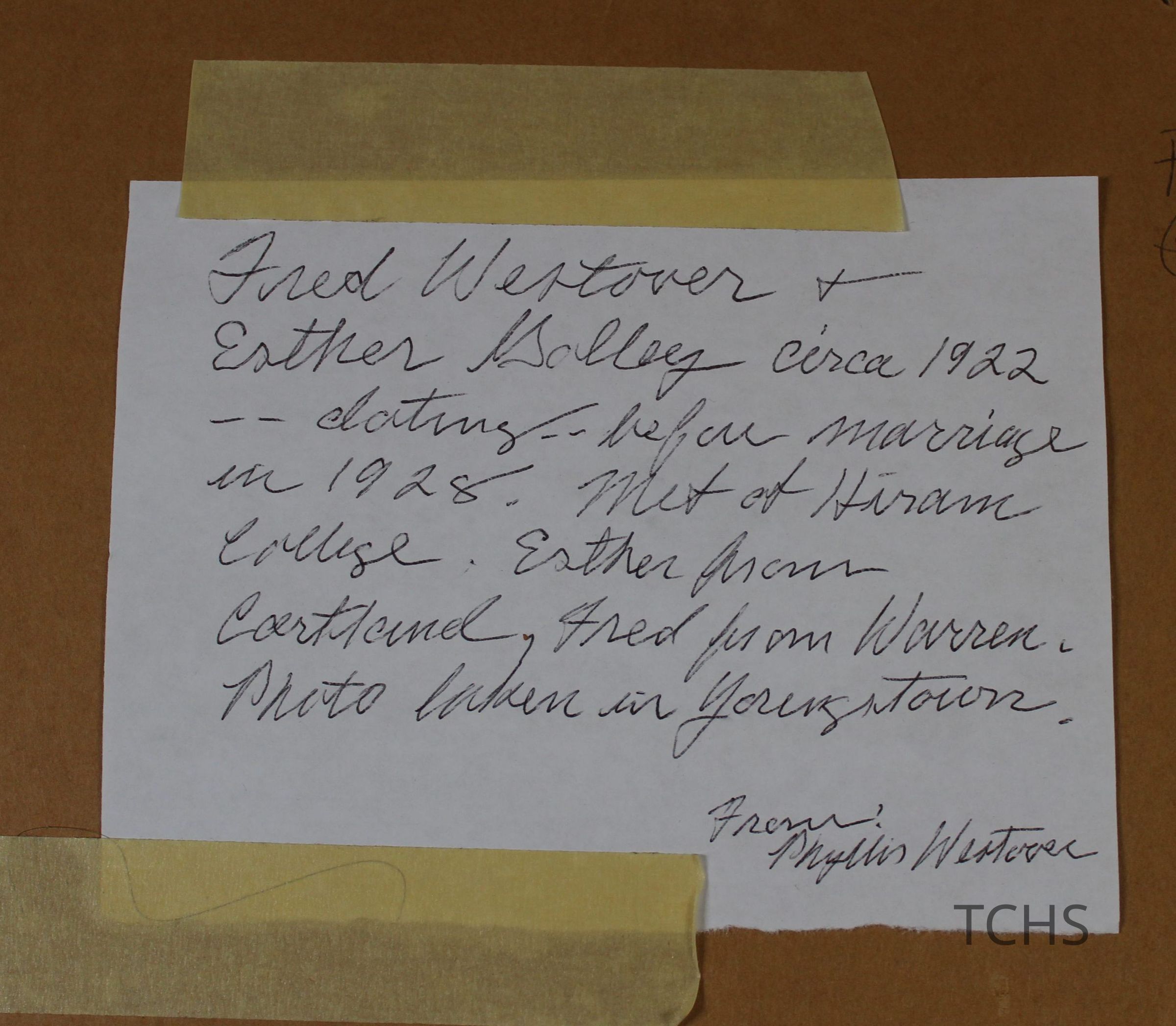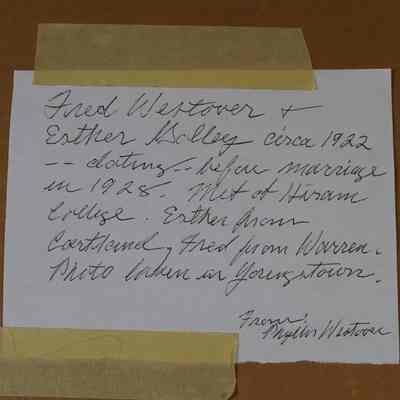 A framed picture of Fred Westover and Esther Galley circa 1922. Taken in Youngstown, OH, before they married in 1928.Location