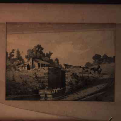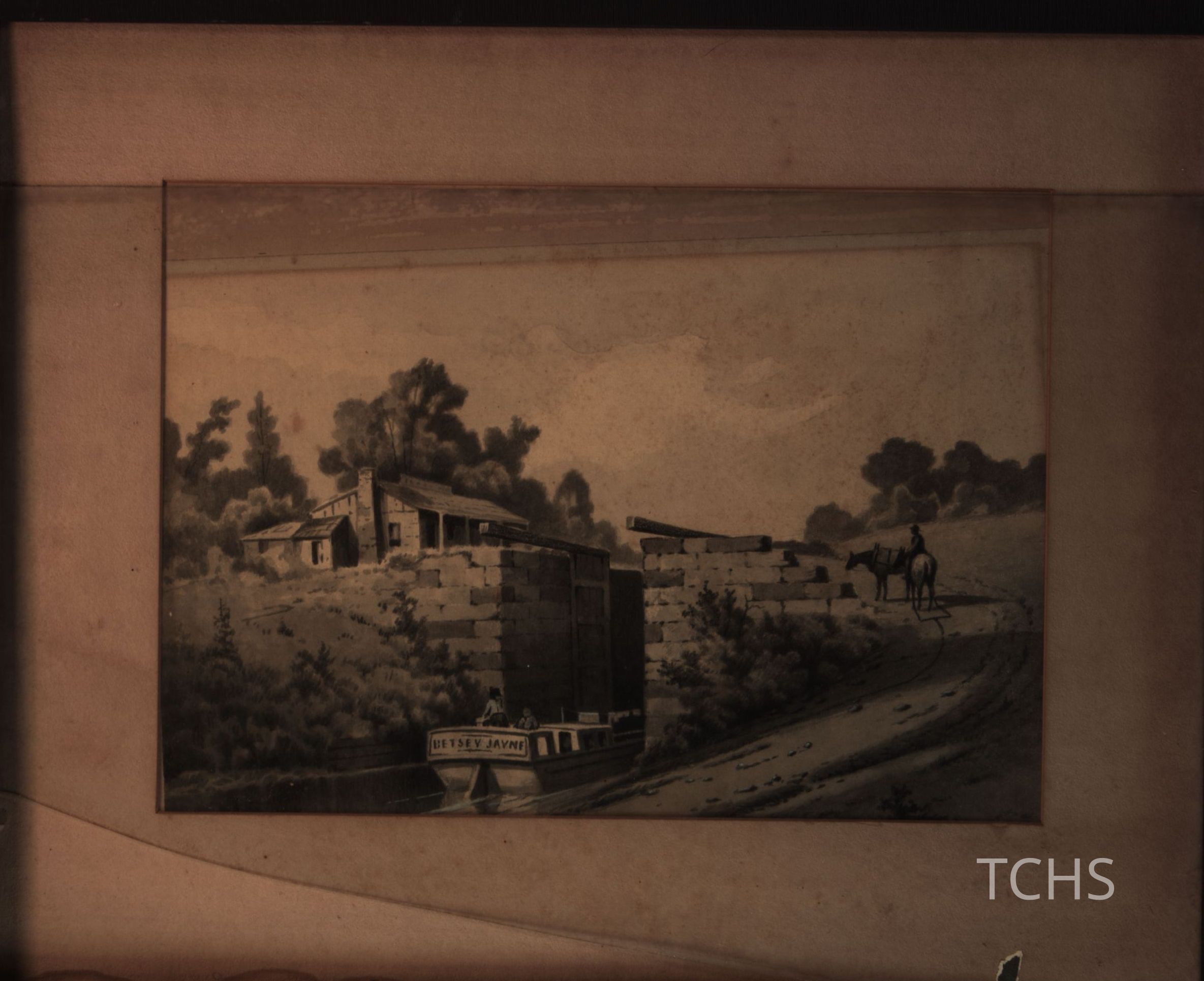 A watercolor painting of a black and white ship named Betsy with white highlights by John Walter Bell, unsigned and undated.Collection