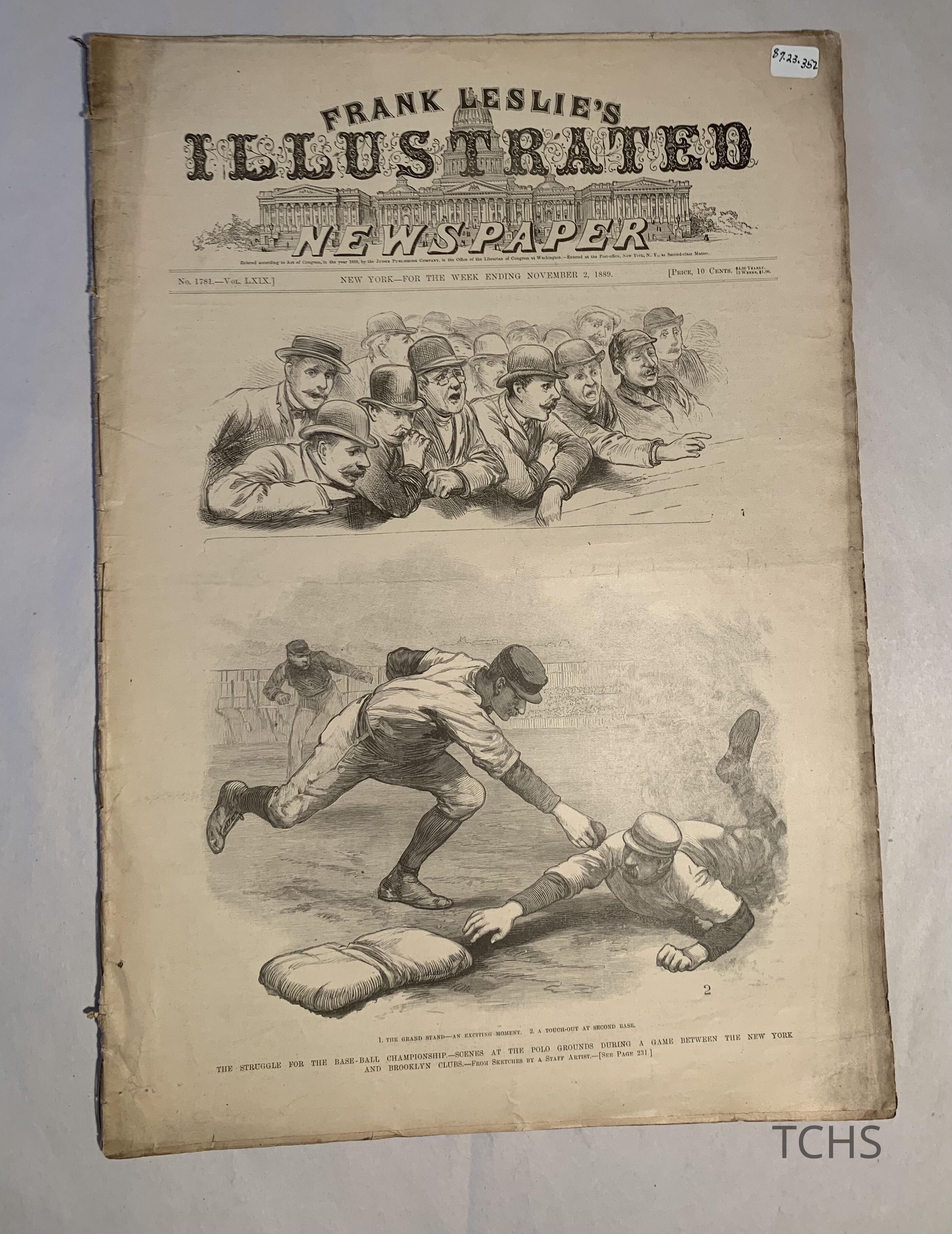 "Frank Leslie's Illustrated Newspaper", November 2. Front cover is baseball game of New York and Brooklyn "Clubs".Acquisition