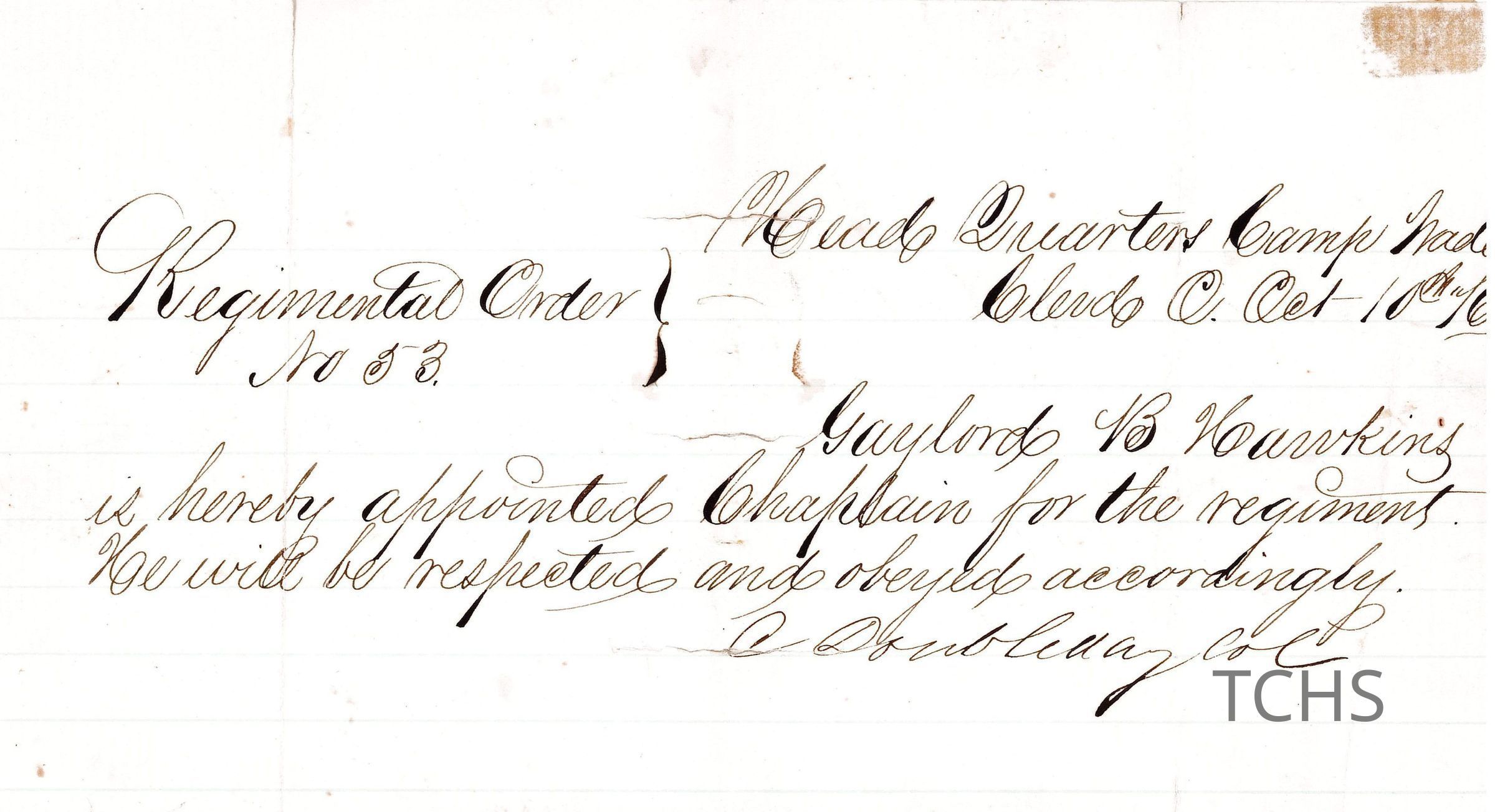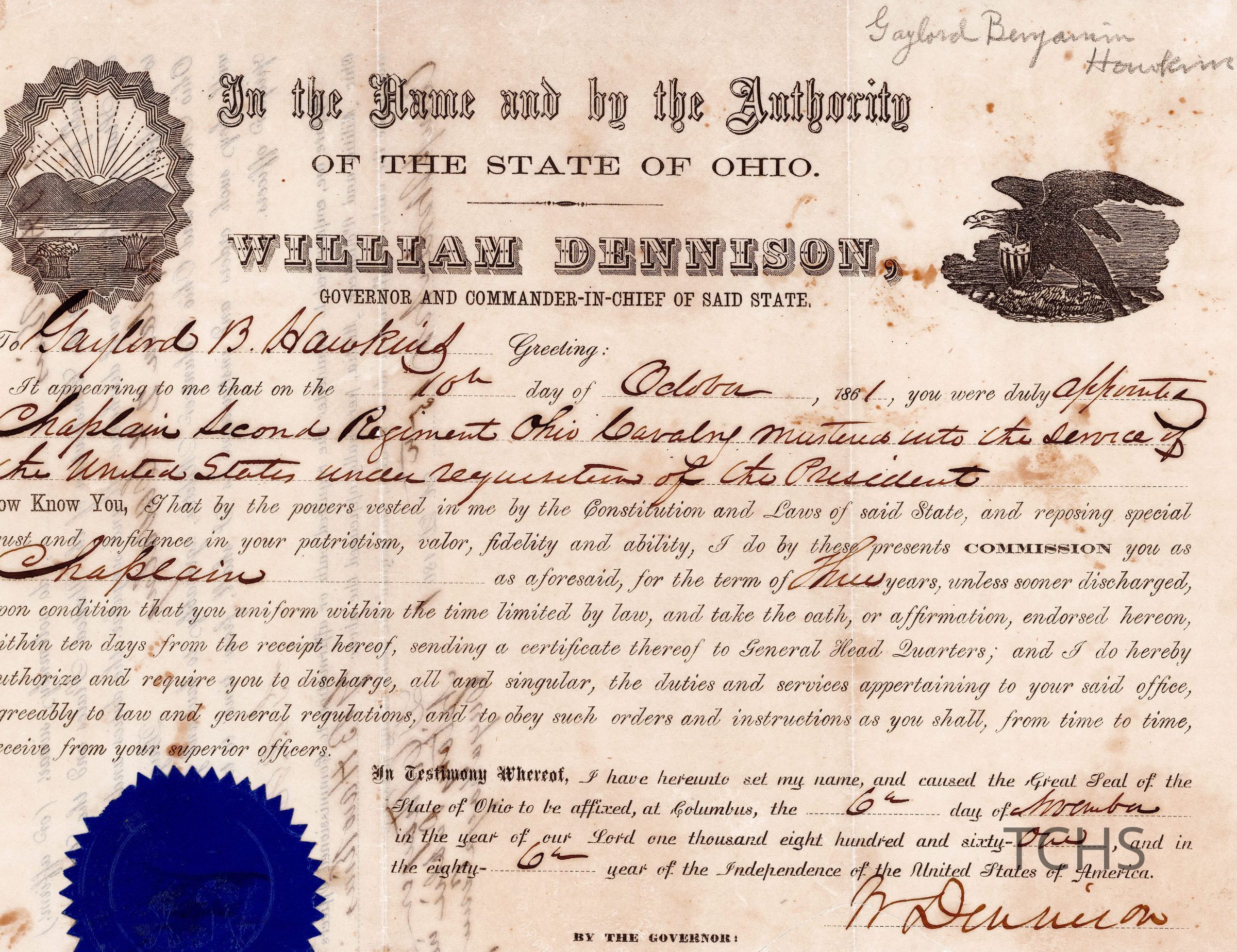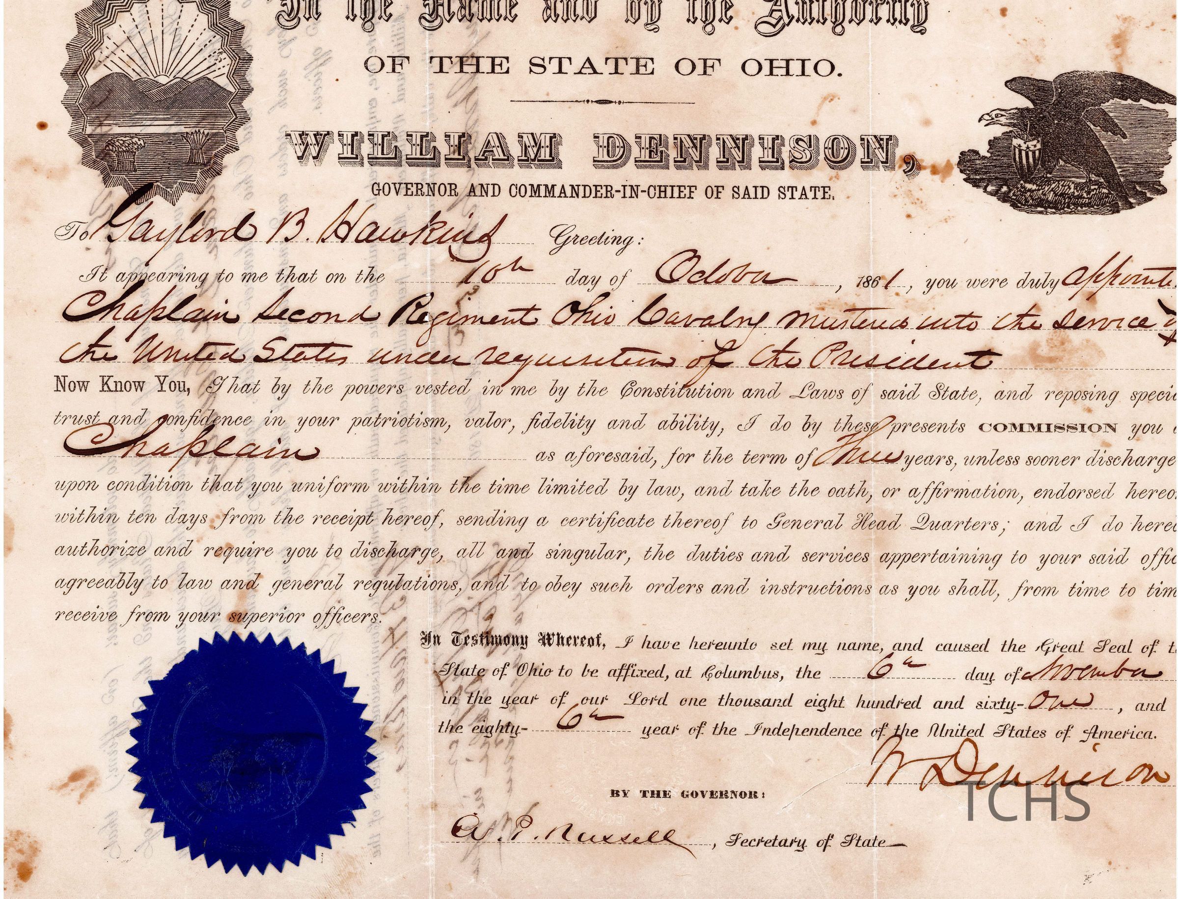 Chaplain's commission to Gaylord Hawkins, 2nd Ohio CavalryCollection