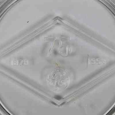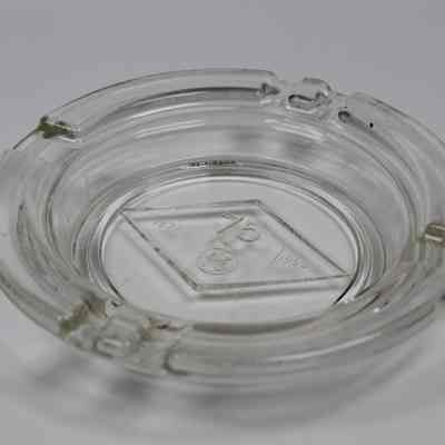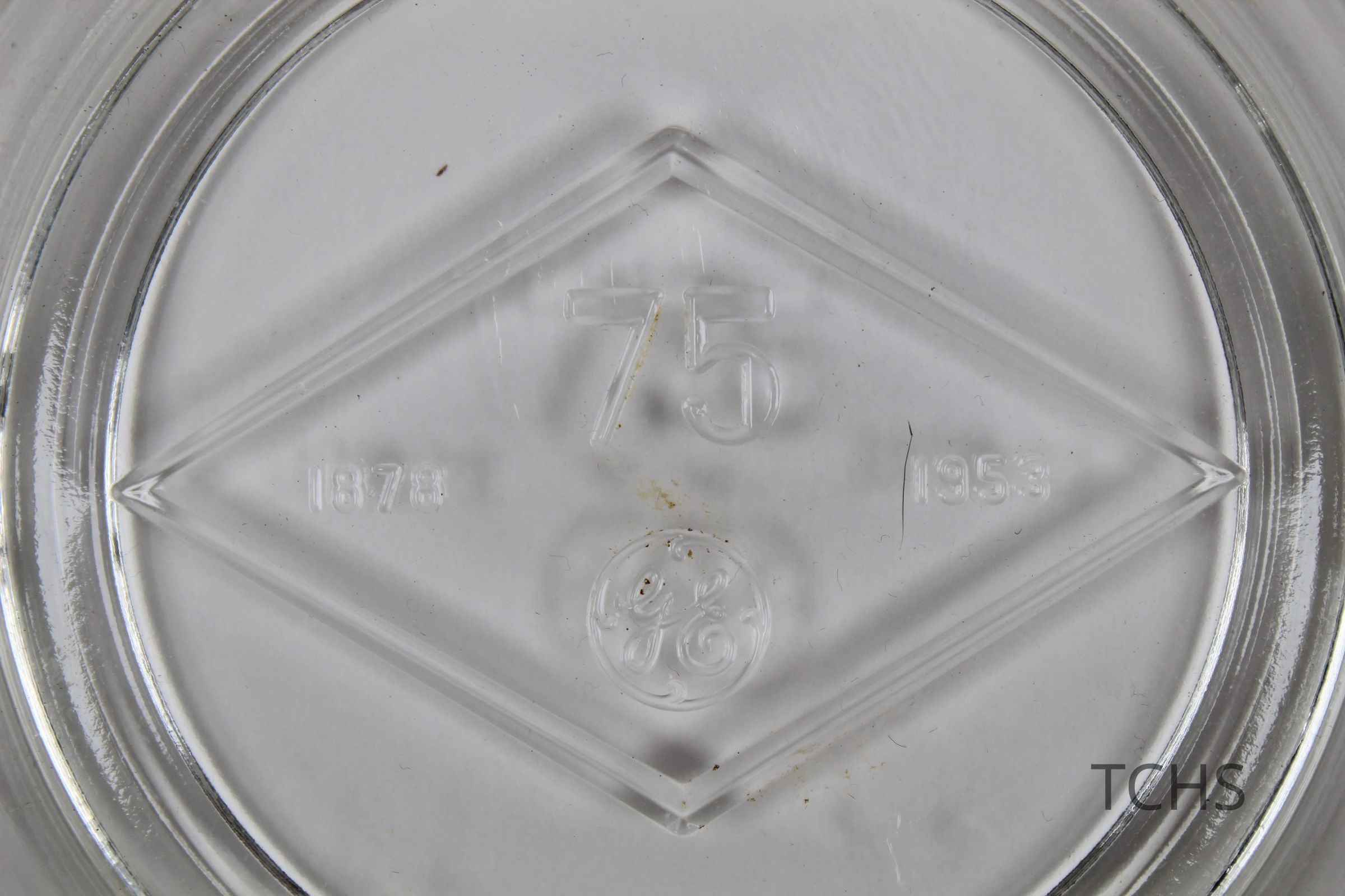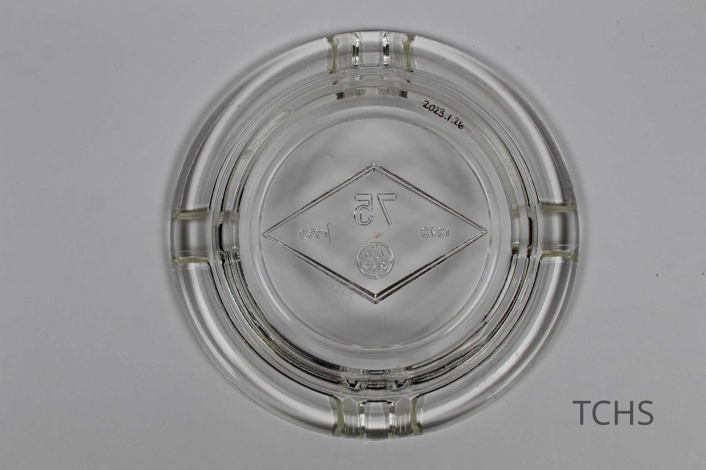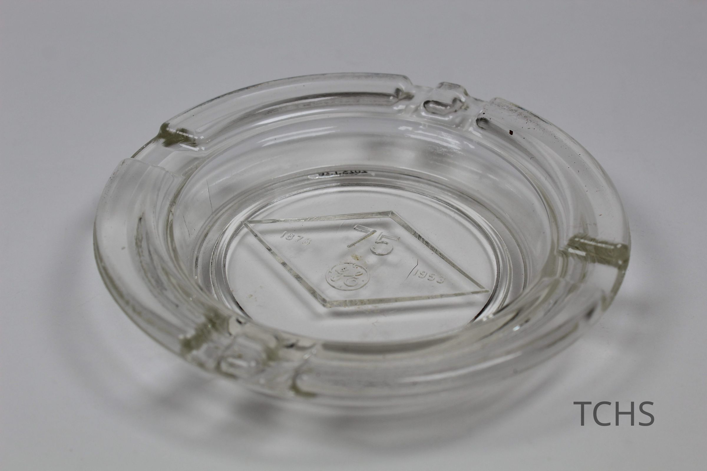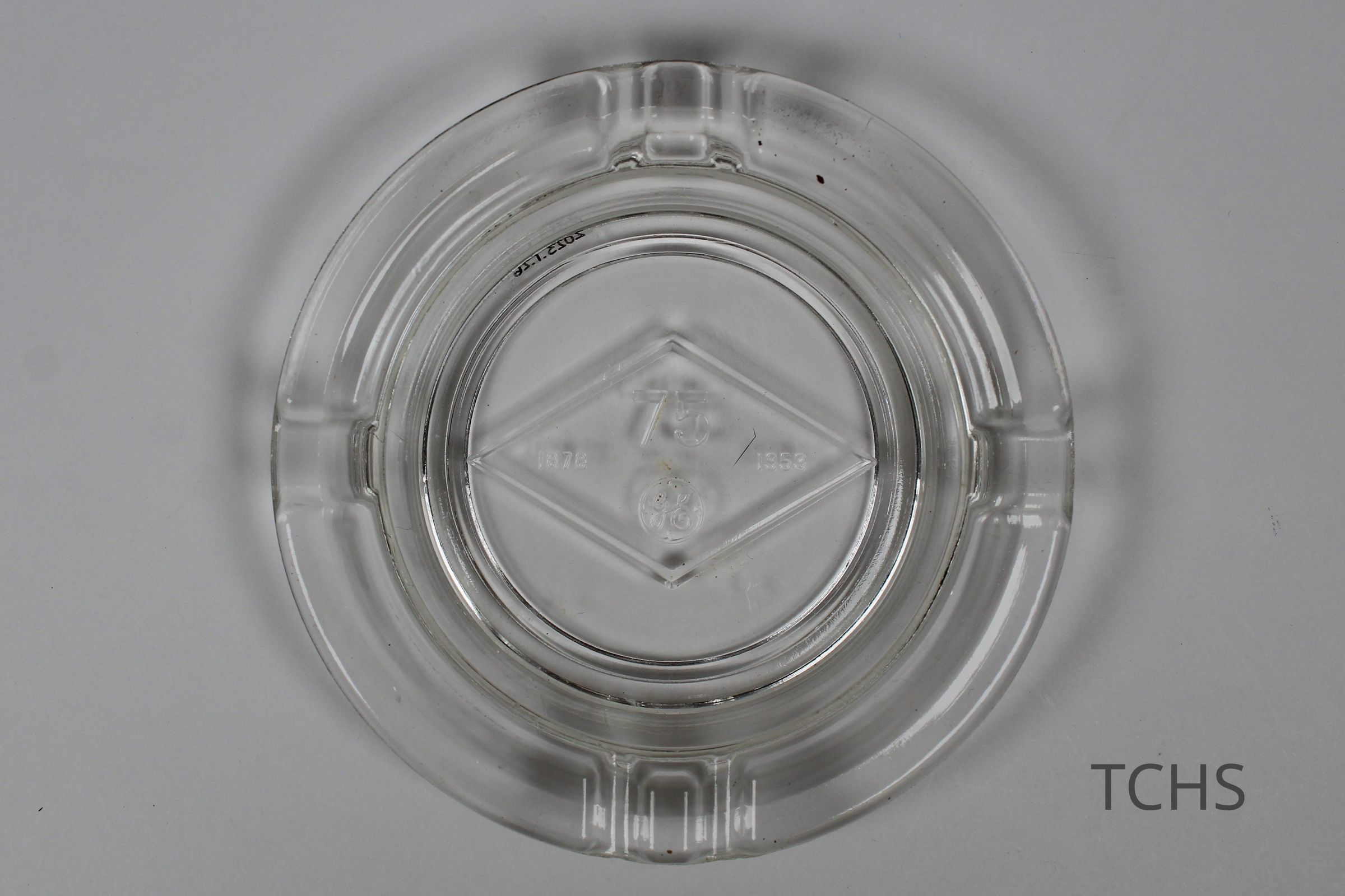 A clear glass ashtray produced for General Electric's 75th Anniversary, 1878-1953.Location