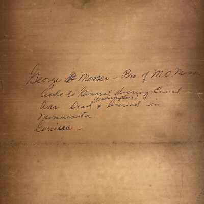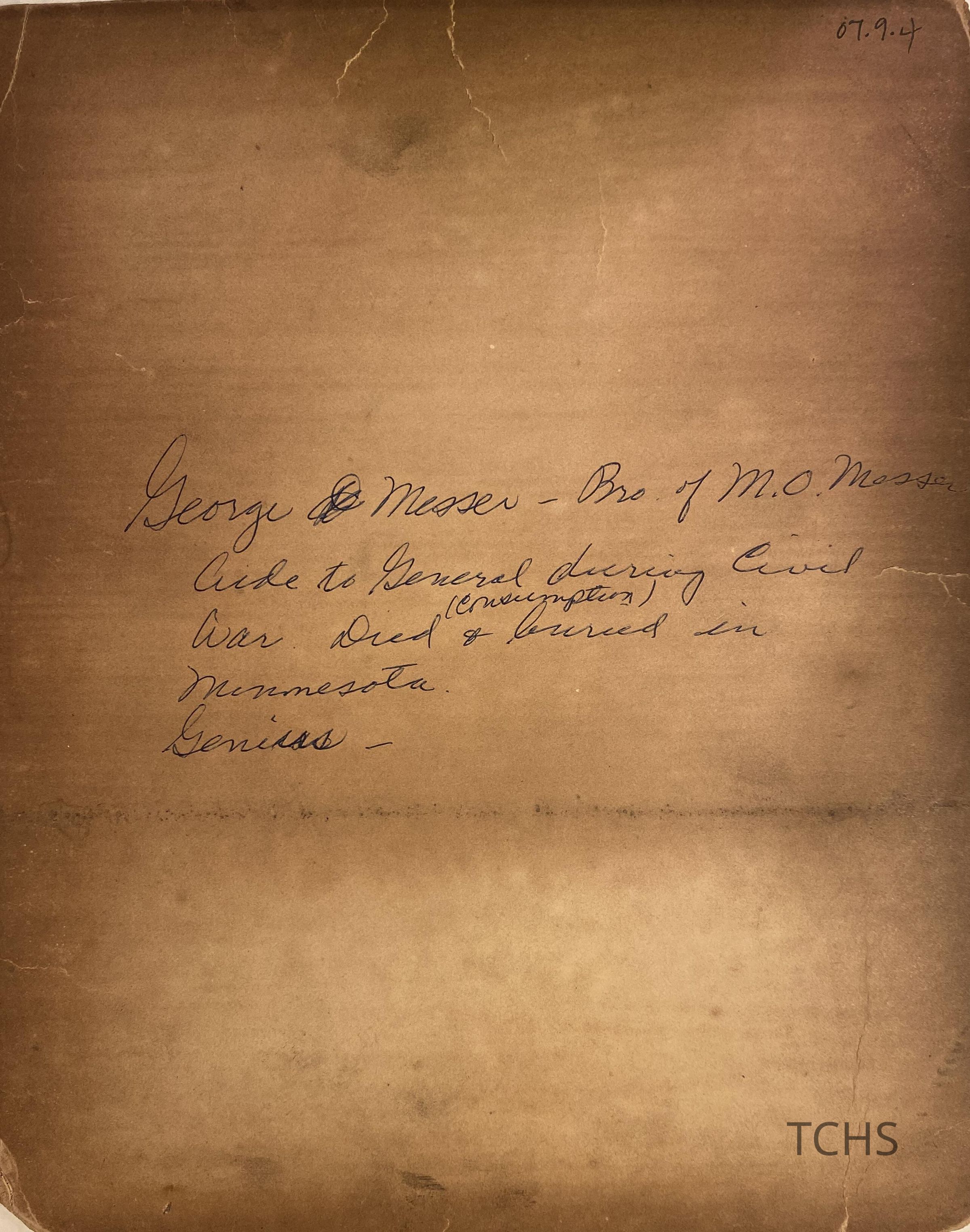 Photo of George Messer "George Messer – Bro. of M. O. Messer Aide to General during Civil War Died (consumption) & buried in Minnesota Genisas"