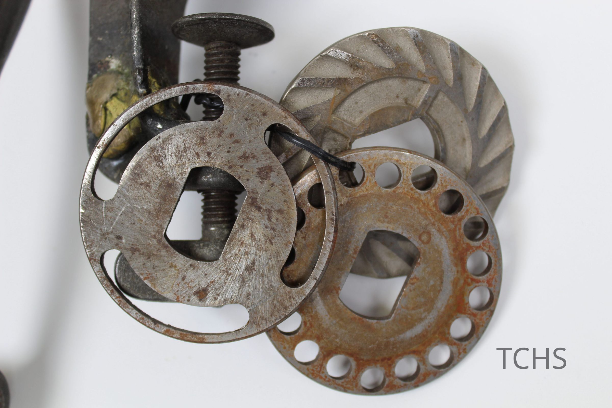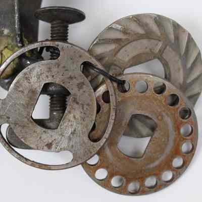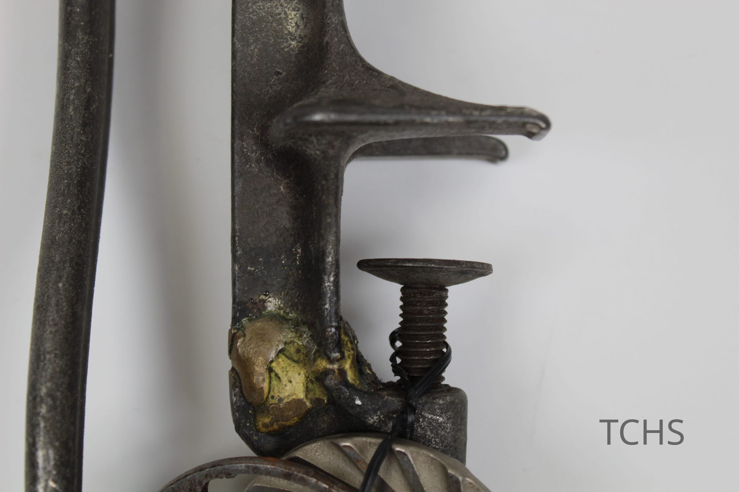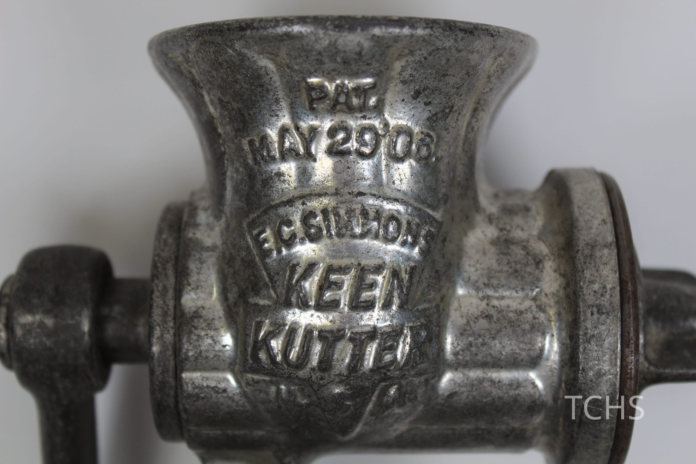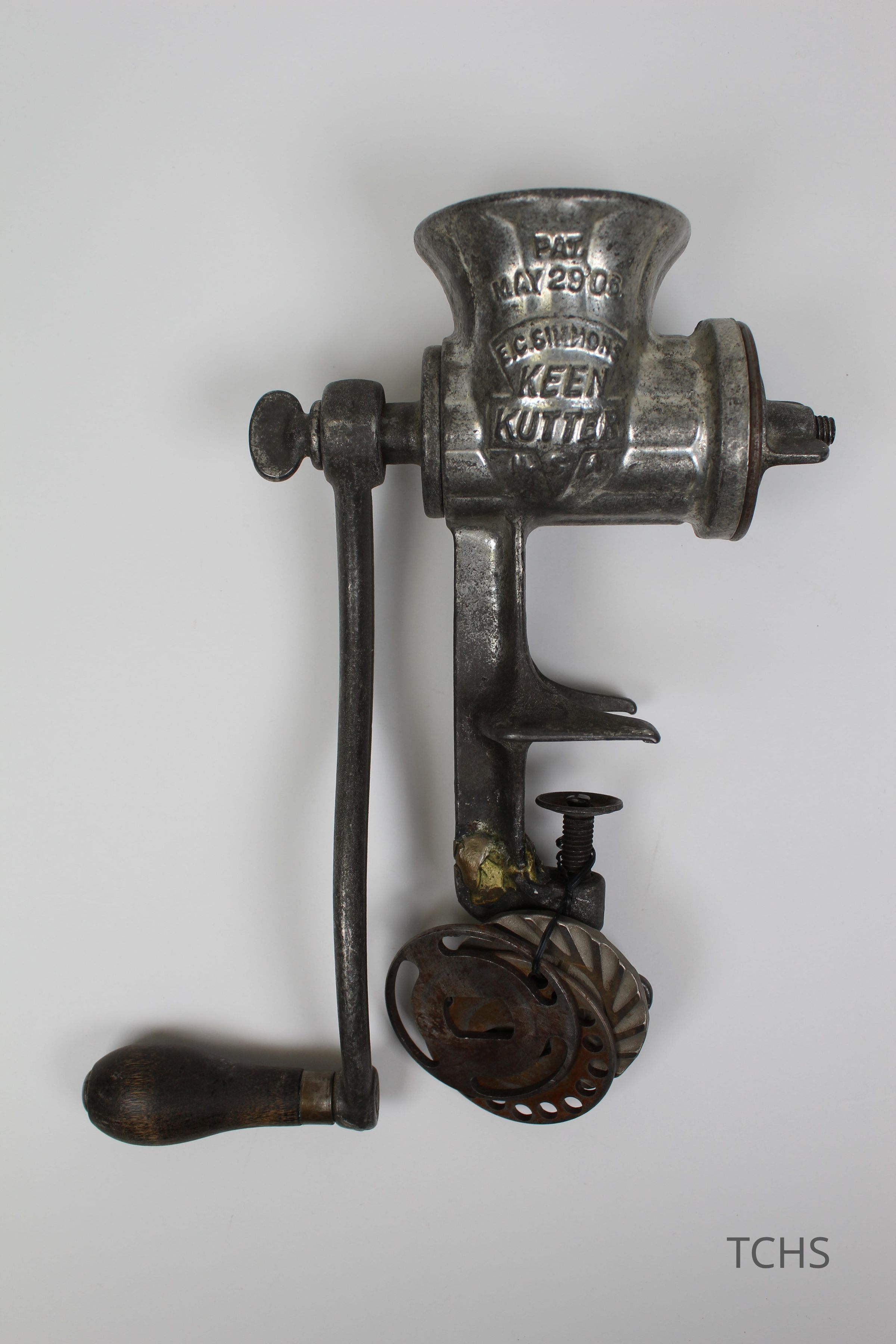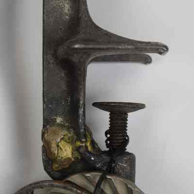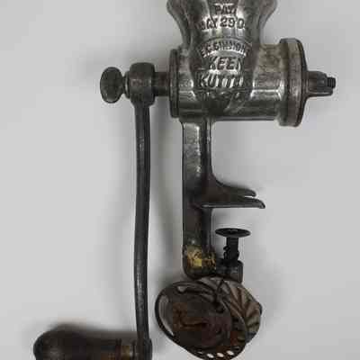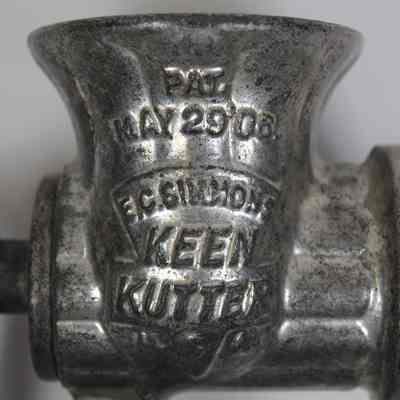 A grinder with table clamp produced by E.C. Simmons Keen Kutter, patented 29'06; there are three different blades attached to the clamp.