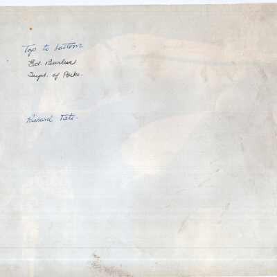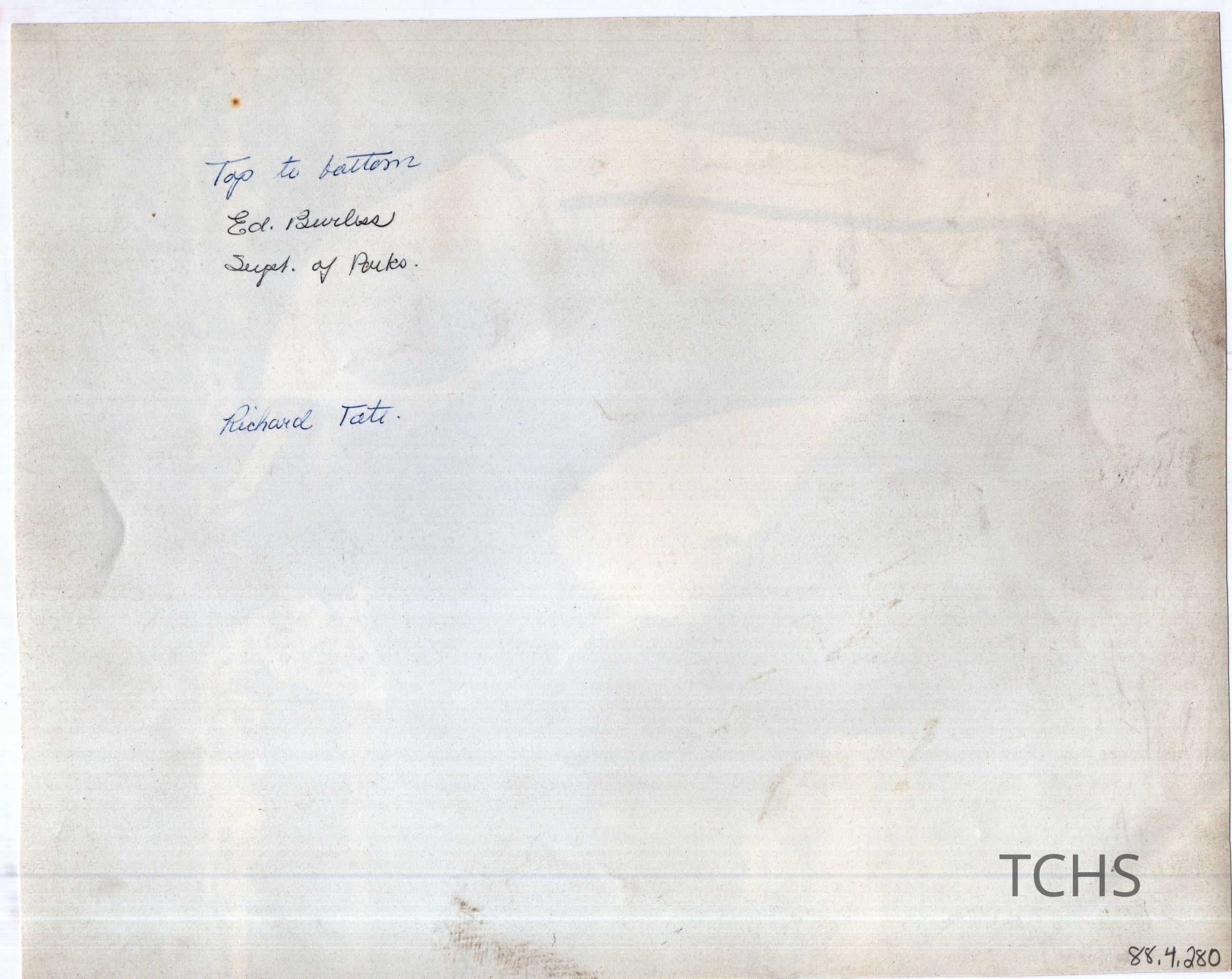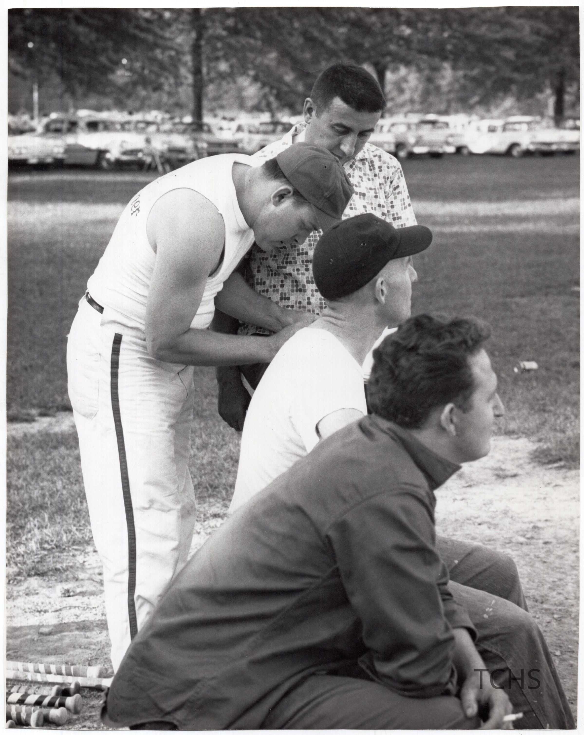 Men participating in a company baseball game. Names listed on back. Ed. Burless is identified as superintendent of parks.Acquisition