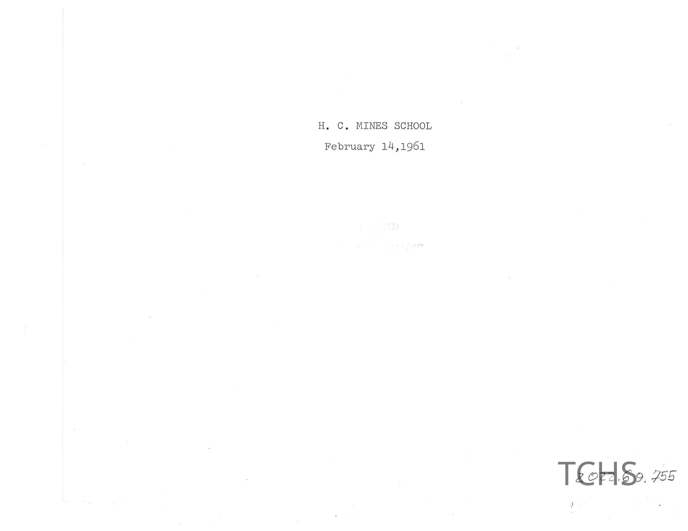 H.C. Mines Elementary School February 14, 1961Acquisition